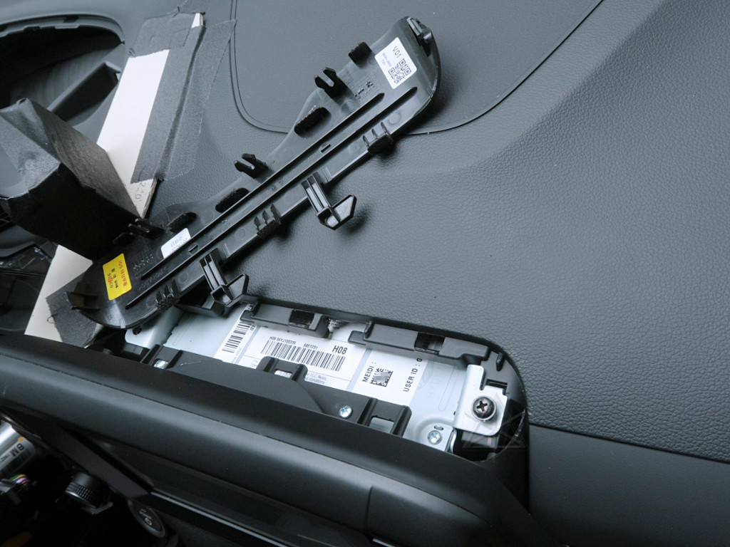 The whole unit went on the bench for disassembly, and from this point it was surprisingly painless to do what I needed. The unit manufacturer simply OEMs third-party modules and adapts them in; the daughterboard here carries the cell radio and the Sirius XM receiver. The cell modem is at the lower right here, with its cover next to it. Apparently made by "Continental", and designed for mobile applications -- it just plugs onto the daughterboard. Often the thru-tabs on such shielded box covers are soldered in, but these weren't -- just twisted a little once through the holes to retain it in place, thus very easy to straighten and remove. There's even an IMEI printed on the module, as well as on the label on the outside of the head unit. No obvious SIM, but these things are probably implemented as an "eSIM" memory block inside which allows for remote provisioning. Popular wisdom indicates that they're probably registered on some variant of Verizon data service. |
