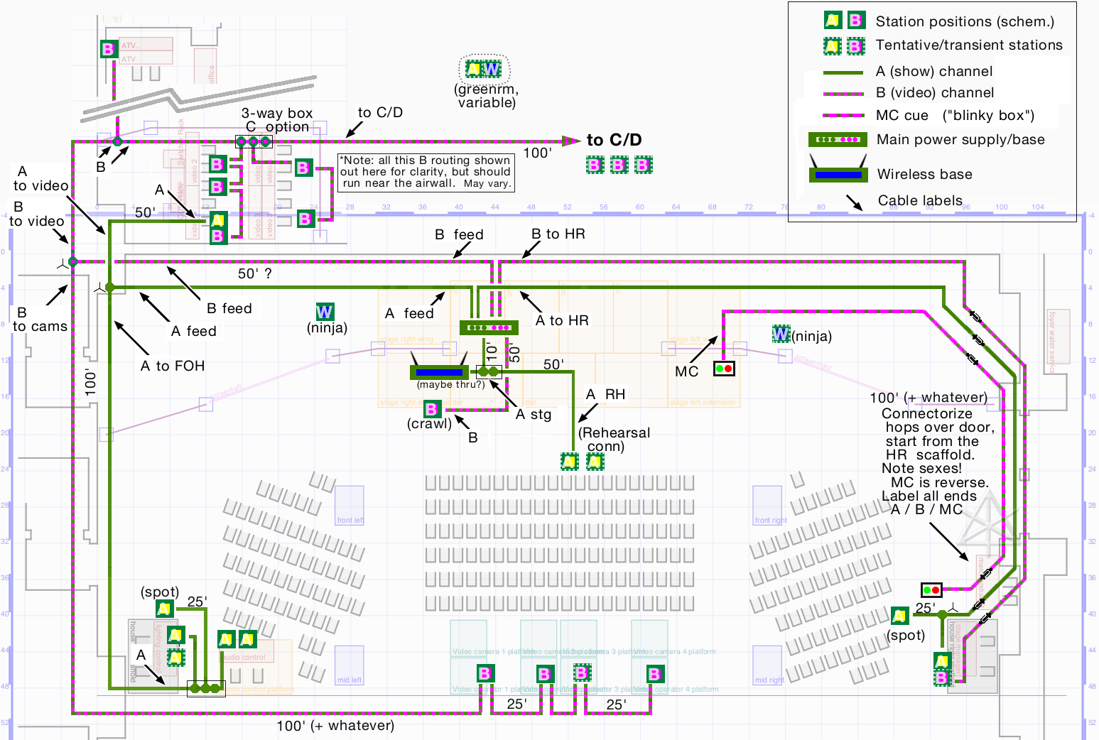 constructing the general "rehearsal bus" to include power, intercom,