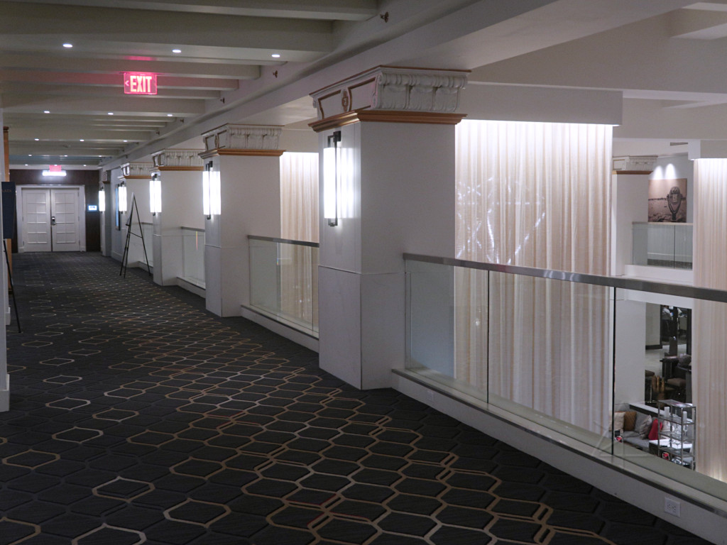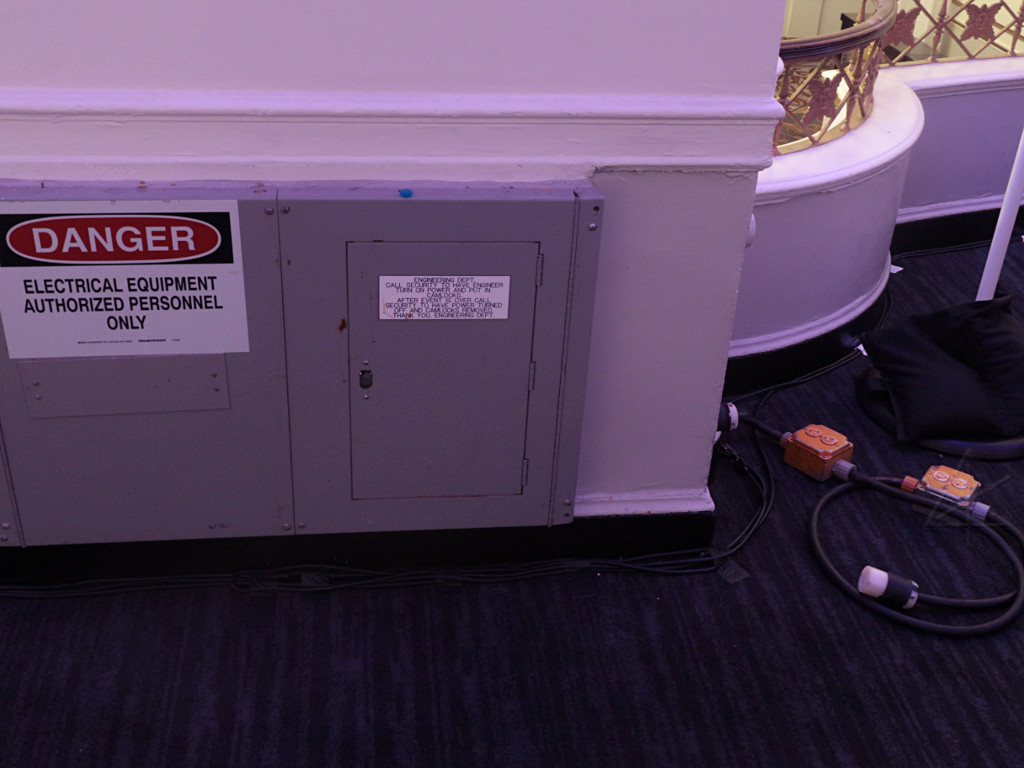 Two out of the four pillars down each side of the ballroom balcony have sets of cam outputs, 200A apiece. |