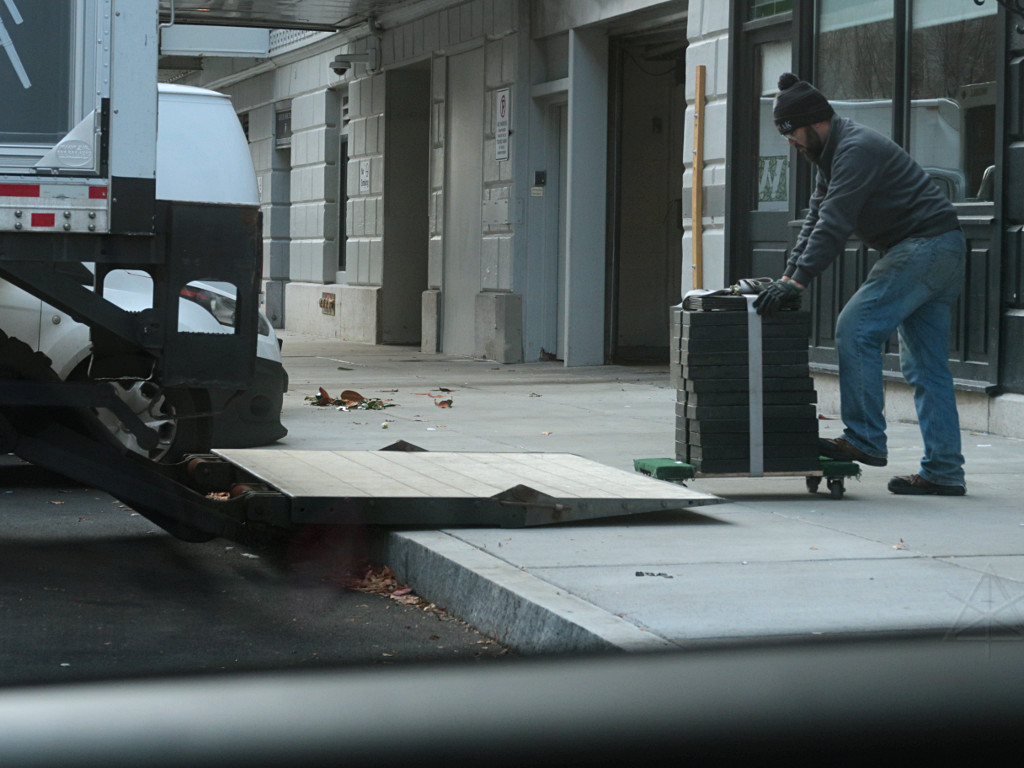 | With the car parked semi-illegally and still powered up, I didn't spend too long in the building and shortly headed out to continue down to my hike. But just before pulling away, I was able to conveniently witness some instructive loading activity next to me. |