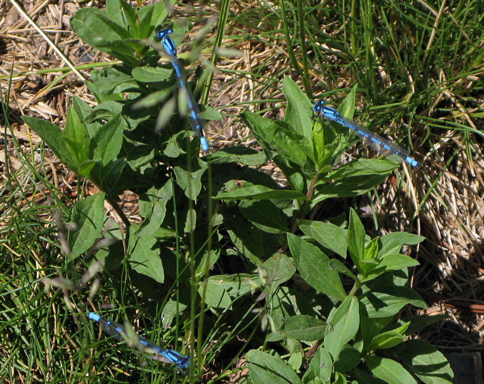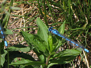 These brilliantly iridescent blue damsel flies were *everywhere* around the wayside store lot I pulled into to see the lake. |