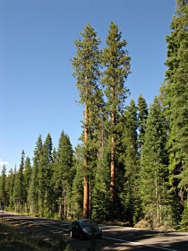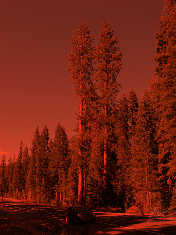 Just kidding. And these big guys are mostly likely Ponderosa pines, not redwoods, even though the bark does have a fairly strong reddish tinge. |