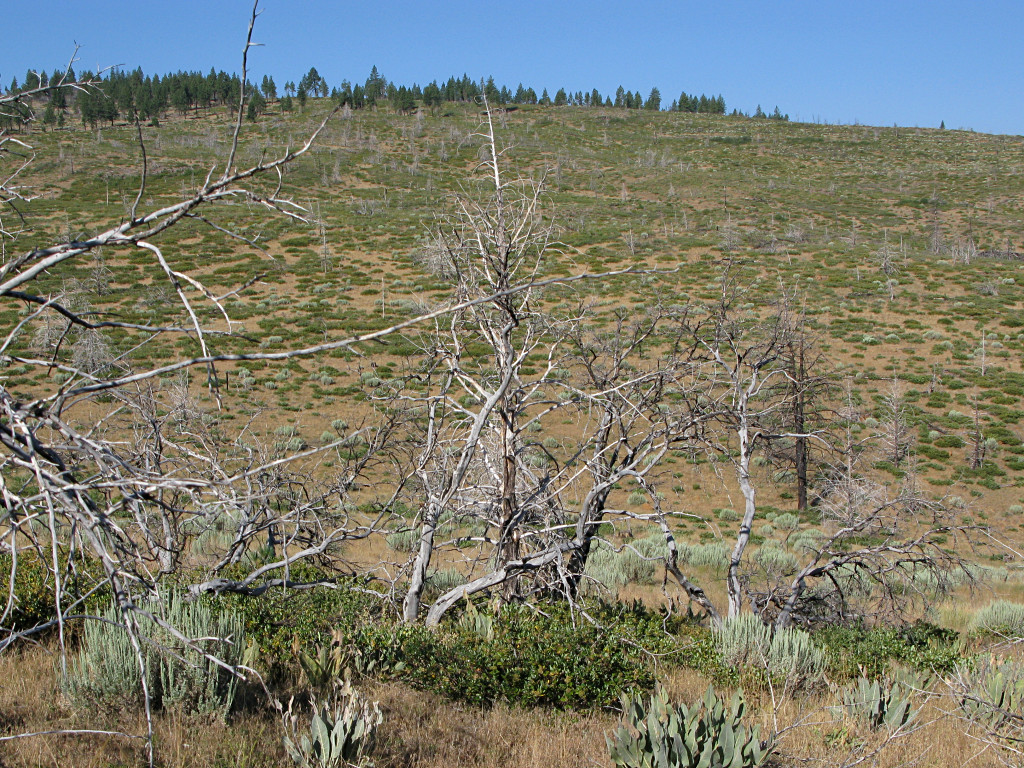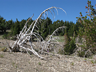 Salted in amongst the live trees, these funky scraggly dead pines are everywhere. Most of the trees around here are a variety called, appropriately enough, whitebark pines. |