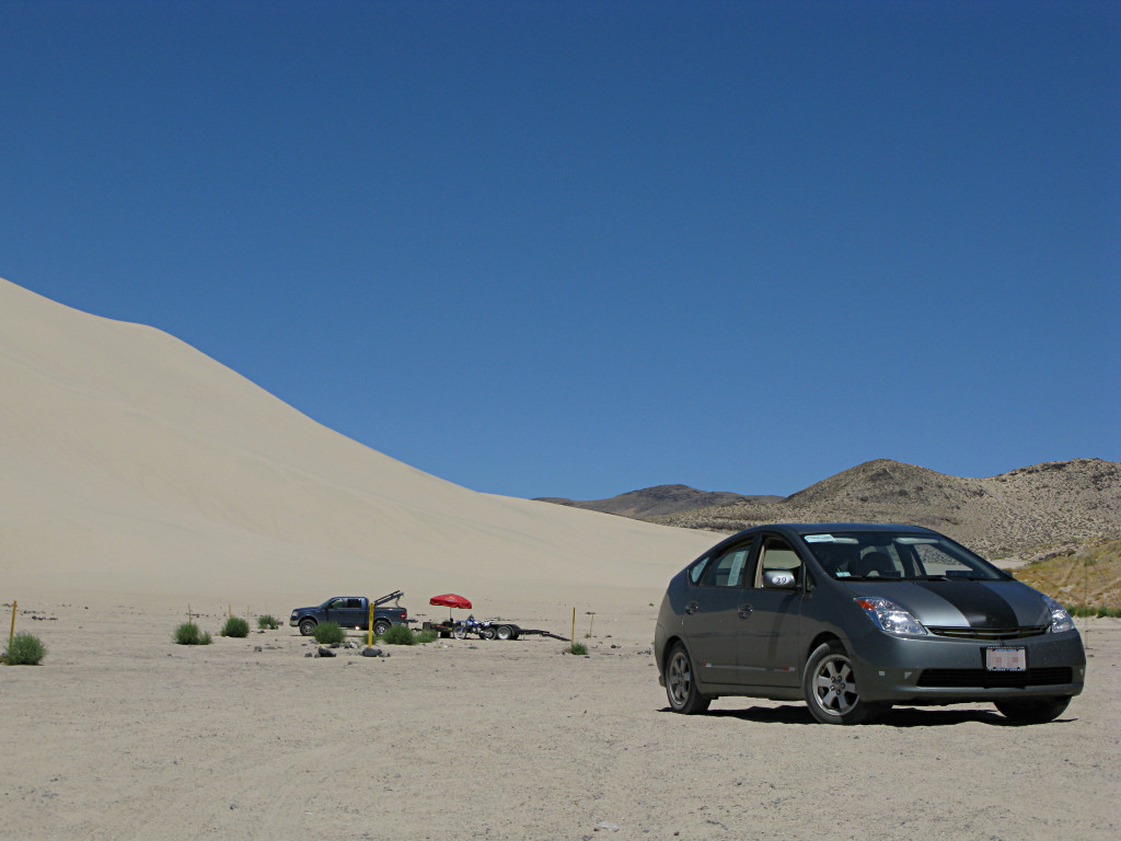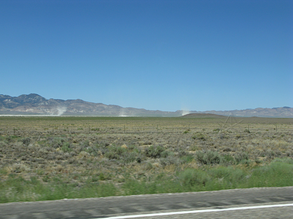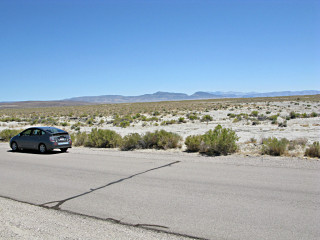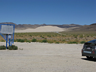 And once again, lost in the middle of freakin' nowhere! I pulled off a little onto a side road to go have a closer look at the land, mostly barren, sandy dirt without much on it except a little scrub. At this point I was about a hundred miles south of where Burning Man takes place, and while it had been tempting to detour up there to see the Black Rock area, I think even here I'd already seen enough sun-baked playa for one summer thankyouverymuch and I wouldn't have time anyway. Interesting Big Art aside, they can have it. |