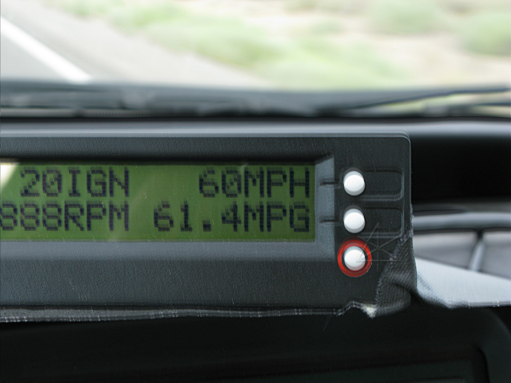 Apparently backups of this magnitude are *normal* for a Sunday night as numerous people return from their weekend recreational trips into the mountains, so I just happened to land in it at the worst possible time. I can identify with this, because back east we often get a similar mess on I-93 south coming toward Boston from the White Mountains. I was also low on gas but none of the stations in town had any regular -- because their deliveries usually arrive Sunday evening, but none of the fuel trucks could get to them through the backup! I decided to just wait for the next day. But the important thing was that I finally had a real shower and a place to relax, with an internet hookup and no insane truckers chasing me! I updated the running forum thread and caught up on mail and some contacts, and turned in fairly early. The next morning I had a nice chat with the 40-year industry veteran doing dispatch at R. Sam Cox and asked if he had received any info about incidents involving the Utah highway patrol, and that piqued his curiosity ... I described the whole horror story with the horses and he was all over apologetic about what happened. "That driver should never have done that," he agreed; "that's just bullshit" and by that he didn't mean I was pulling his chain about the incident, he was genuinely concerned about his company's professional image to the public. Case closed, I thought. By the time I got myself coffeed and checked out the gas stations finally had their regular again, and I was soon all set for the next phase of the adventure. I basically had the morning to kill before hooking up with my first contact in the Denver area, so I could be a bit leisurely. I spent a little while in the motel parking lot fooling with some more Xgauge setups on the Scangauge, including one that passively reads hybrid battery voltage very fast off the CANbus. It's interesting to watch that go up and down, which it does over a fairly large range. The nominal "201.6" volt battery is rarely at that level; real life no-load voltage is more like 225 and under various charge and discharge conditions can go as high as 260 or down to 190 or less. No wonder most state-of-charge calculations are based on coulomb-counting via the current sensor and integrating over time -- trying to determine anything from pack voltage alone would be futile, especially if there's a possible ambient-pressure dependency going on. |