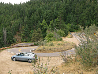 On a road with relatively short straight parts that go into repeated sets of twisties at a 35 or 40 posted safe-speed, I have found that bringing the RPM fairly far down but maintaining torque load allows gentle acceleration at roughly a 40 MPG rate, which a non-instrumented Prius driver can use as a benchmark. It's like being in high gear in a manual -- generally you don't take off nearly fast enough to satisfy a tailgating redneck, so judicious use is recommended, but if the conditions are appropriate and one's foot is locked into that spot, the car will work its way very efficiently up to spanking right along -- by which time, especially on a road like this, the next curve warning sign is visible and it's time to get off the gas and plan the glide down into it. In other words, a much more "damped" rise and fall between slower and faster parts, adapting to terrain as needed, with clear results: 64 MPG showing on a fresh tank for most of that run, getting there in a perfectly adequate timeframe, and stone-cold brakes at the end of it. |