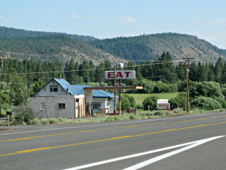 At one point a trio of Harleys passed me, and about a hundred miles later, the same group passed me *again*. I caught up with them in Eureka later, the middle of the three notable towns along this whole stretch, and stopped for a quick break and got to chatting. They were headed to Sturgis, and decided to go via the more "adventurous" route and take in a lot of scenery. Obviously their fuel stops would be more frequent... They had a kid along with them, maybe 12, and a tiny dog that came with its own do-rag and leather vest and rode along just fine in a *chest pouch*. All three bikes were also laden to the hilt with camping gear, of course. I *wish* I'd gotten a picture of them and the dog because it was sooo cute, but I think we were all more intent on gittin' on down the road. There were actually quite a few missed photo opportunities of this sort -- either no time, wrong angle, infeasible to stop, too much of a time-sink to drive toward, or flat-out lameness. Sometimes I would substitute by just making a note for later. Trying to catch everything would have doubled the whole trip time and the number of "keeper" pictures, so I didn't mind having to draw the line *somewhere*. Besides, every picture has some amount of story behind it and quite often, that piece of story would already be forming in my mind *as* I went for the picture. That would affect how it was framed and focused, where it was shot from, whether I'd try to put the car in it or not, and if any additional "leadup" shots needed to be captured afterward to help round out the explanation. Again, the numeric filenames gives some hints about how some of this got mixed up and reordered. In other words, I spent a certain amount of time on the roadtrip in "journalist mode", thinking in terms of the final writeup even down to the wording. But plenty of shots were just spur-of-the-moment "hey that's neat" reactions. |