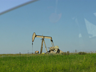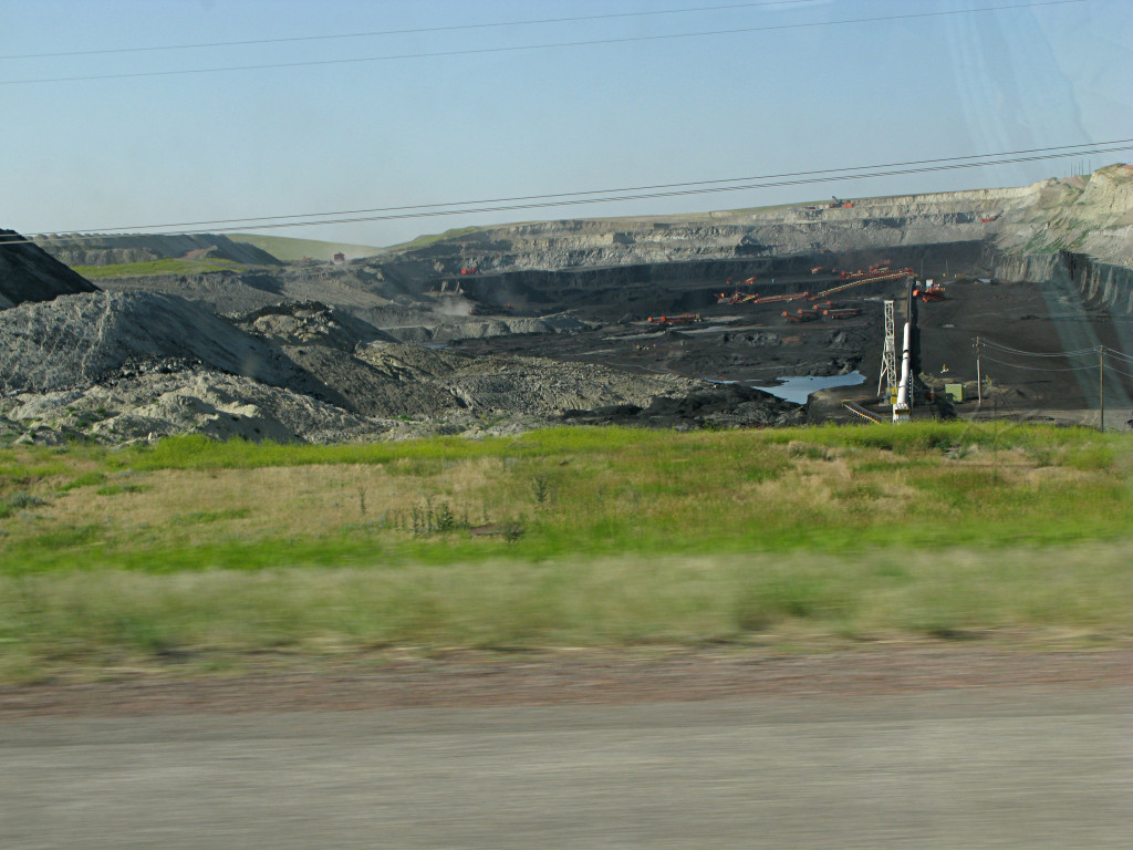 If it's not oil, it's other dead dinos. The black line just under the horizon is a coal train, probably rumbling off to a power plant where most of its load would be burnt by tomorrow. |