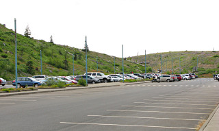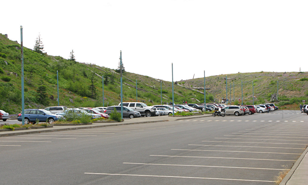 The Johnson Ridge Observatory can handle a lot of visitors, with fairly huge parking lots and even on this cloudy day had quite a few cars in it. |
