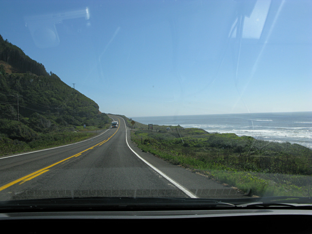 She didn't have tent sites per se, as the park was geared entirely toward RVs, but put me in a full-hookup slot and only charged me $15 or something. The place wasn't anywhere near full, so I guess any business is good business. I retired to the little mobile office to do some more trip planning, and after squinting at the maps a bit I decided that yes, Crater Lake was a little closer than I thought and thus an easy and minor route-change, and gave me a much more certain destination than randomly noodling down into NoCal and then wondering what to do next. Besides, my deadline for getting to Denver was looming much larger and I had already likely seen many of the prettier parts of 101 so maybe it was time to turn eastward anyway. With the decision now made and most of a route laid in for the morrow, I hit the sack. |