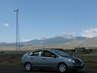 What's odd about it, in retrospect, is that the Livescience wind map doesn't show this as a particularly strong area, only meriting a "1" on their speed scale. But Iberdrola evidently knows the reality because here were the turbines, peppering the hilltops for miles and lazily waving their huge arms around in a sort of unidirectional synchronized-swimming dance. But as I was discovering for myself, feeling the car being buffeted around, there's hardly anything lazy about it -- with the force of the wind howling up the Snake River valley like it does, there are some *serious* zoobs being produced out there. It's also interesting that several rows of the turbines are down behind the crest of the hill, suggesting a fairly smooth laminar flow of wind *over* the bare bump, to form a little boundary layer on the backside, and landing squarely into the blades. |