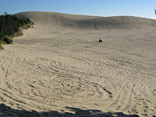 Well, it's clearly a dune buggy and ATVer's paradise, which goes on for *miles* along the coast. Gone were the craggy rocks and weird little islands, now it was all just a rolling sea of sand in front of me. | |
