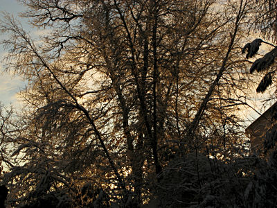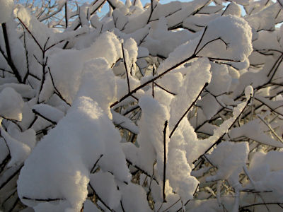 | Here we can see how the snow not only stuck to every tiny twig, it didn't just pile up vertically but actually *expanded* as it built up. |
