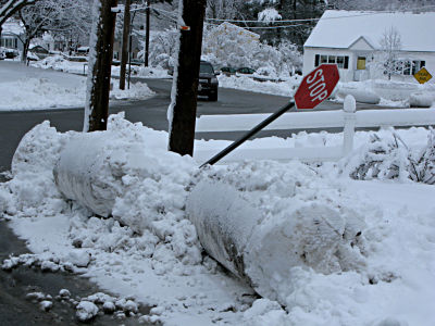 | These folks didn't bother shoveling their driveway, preferring to just blast through it with their SUV. Once this gets rained on and refreezes, they'll probably regret not doing the work. |