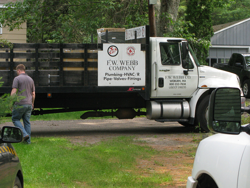 This bit of work was interrupted by the delivery truck arriving. I had no idea that F.W.Webb, a Northeast-local chain mostly dealing with mainstream heating and plumbing, would also be one of the major Daikin suppliers. |