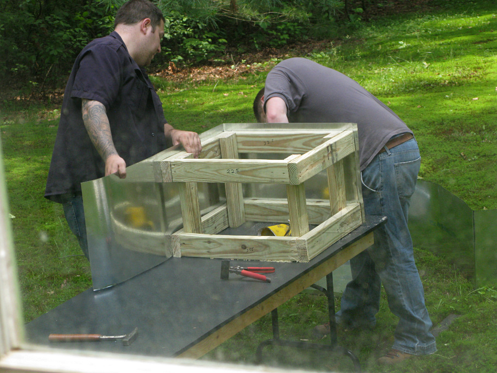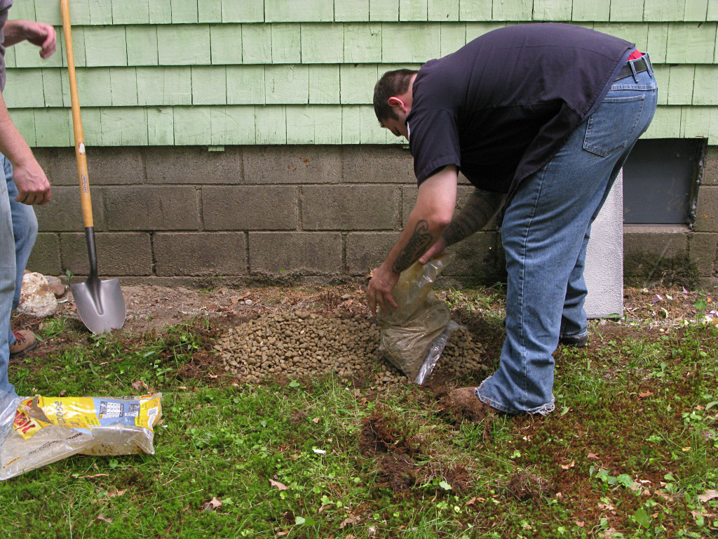 Well, it turned out he hadn't died in a car crash or skipped town with my first check after all, he'd just gotten into the busier season [it was warming up, after all] and had various Life stuff going on in the meantime. Once back in contact we finally agreed to hold off for the rest of the rainy week we were in at the time and begin work on the next one. He showed up hot on the heels of the electricians that Monday but not to actually start, just to review the job and get some of the newer specifics I had for him and confirm the equipment orders with the supplier for the next day. Once we were back in good communication everthing seemed fine again and he was still interested in the larger context surrounding the project, thus allaying my vague fears that this job was never actually going to get done. |