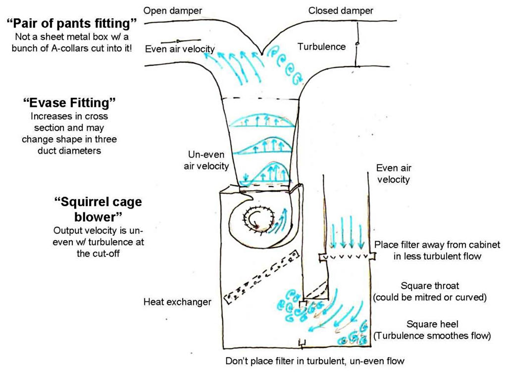 This went into place on top of the air-handler and short takeoff sections were added to tie it into the old ducts. The joints mostly got sealed up with Hardcast "iron grip" mastic and aluminum tape. |