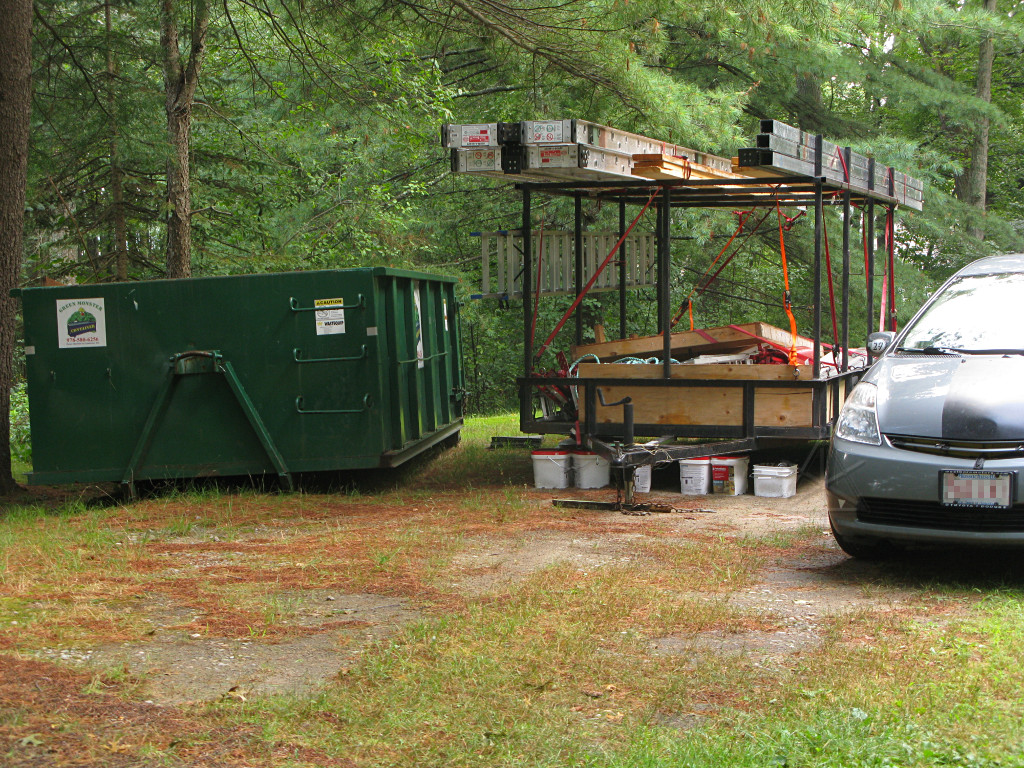 | What I'll probably never know is what happened to all this debris. At least it wasn't a huge lead-paint hazard, per my tests, but while Synergy and I had talked about a *possibility* of recycling the shingles and such which would have required a second dumpster and more careful sorting that didn't even come close to happening, and everything got indiscriminately pitched into one skip and hauled away and that's all we knew about it. |