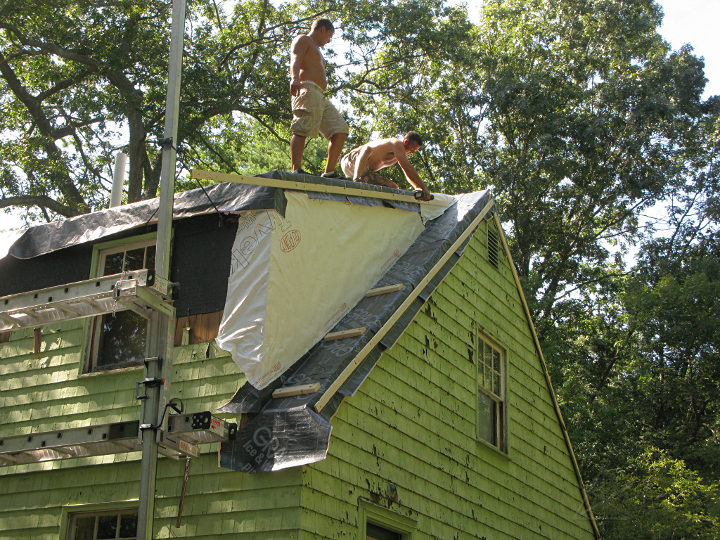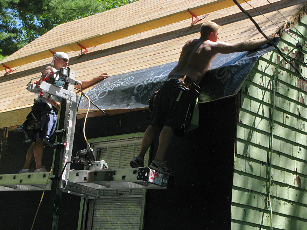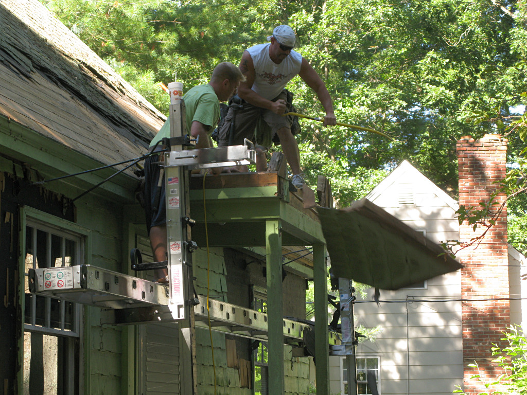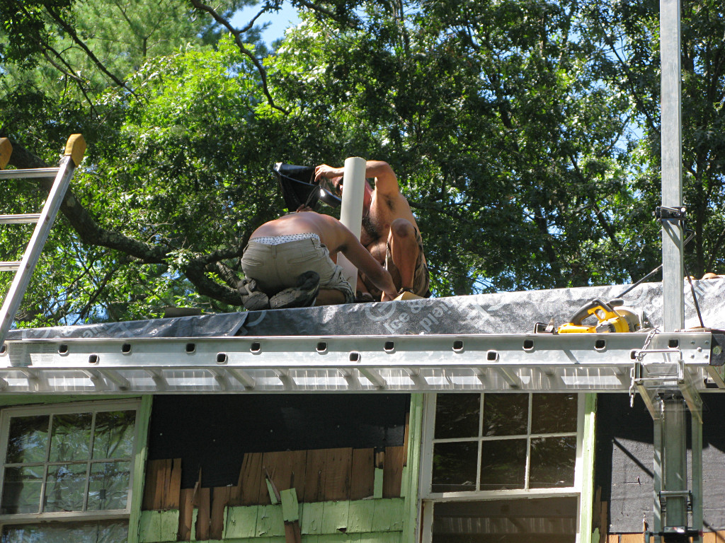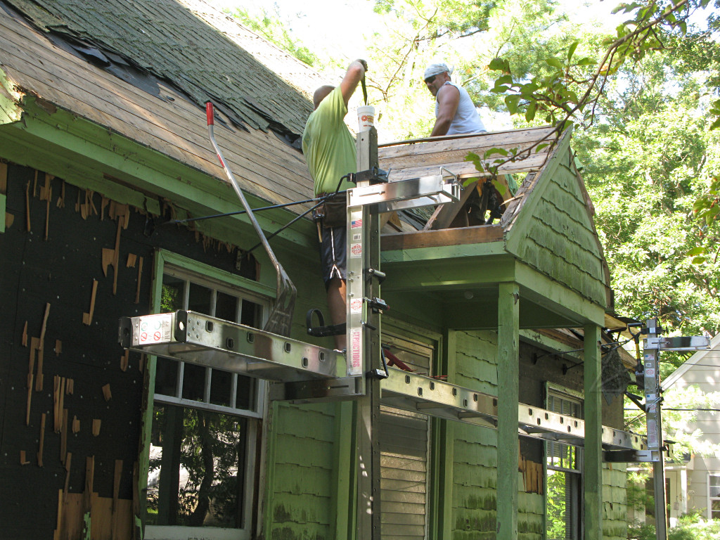 Meanwhile, the guys working on the shed-dormer roof in the back had it almost clear. |