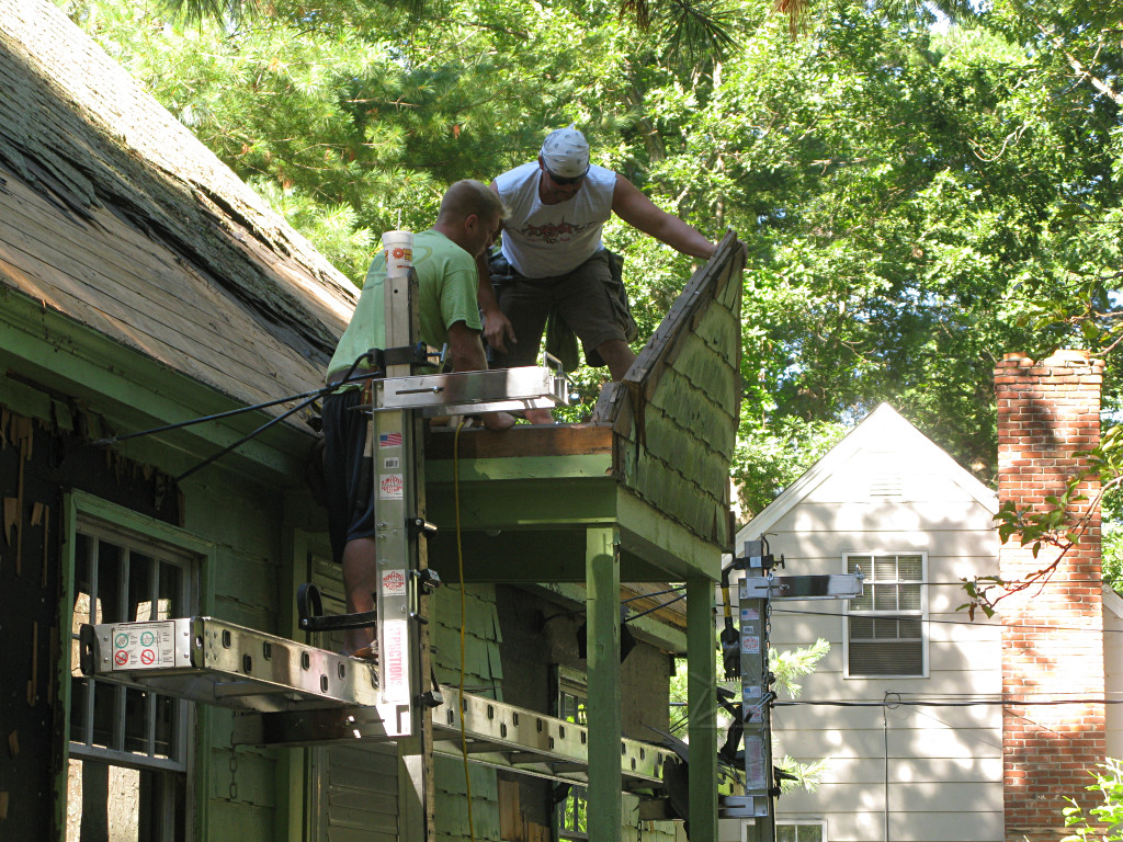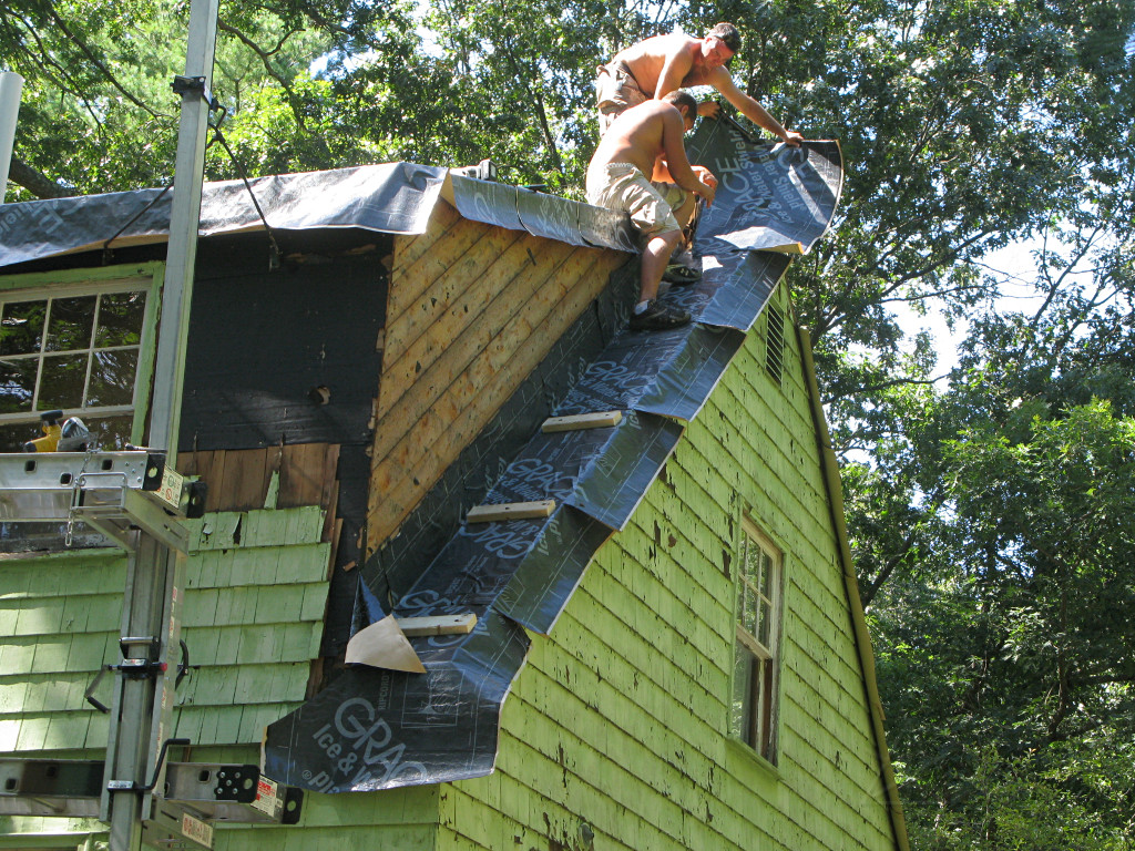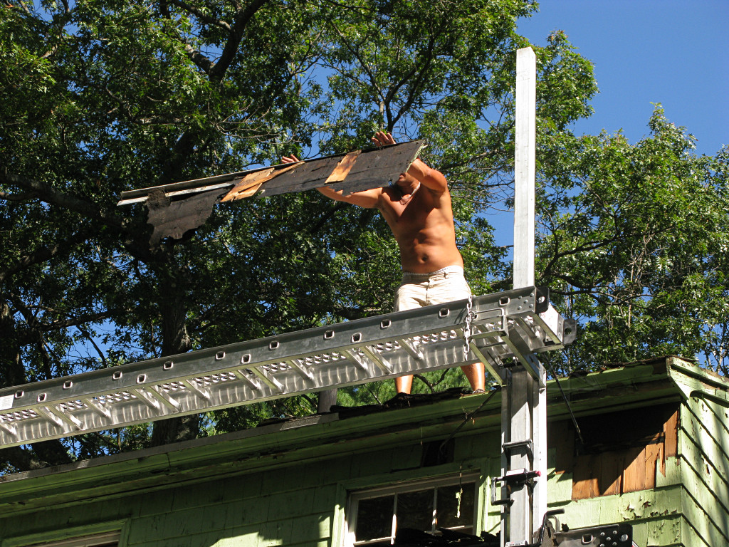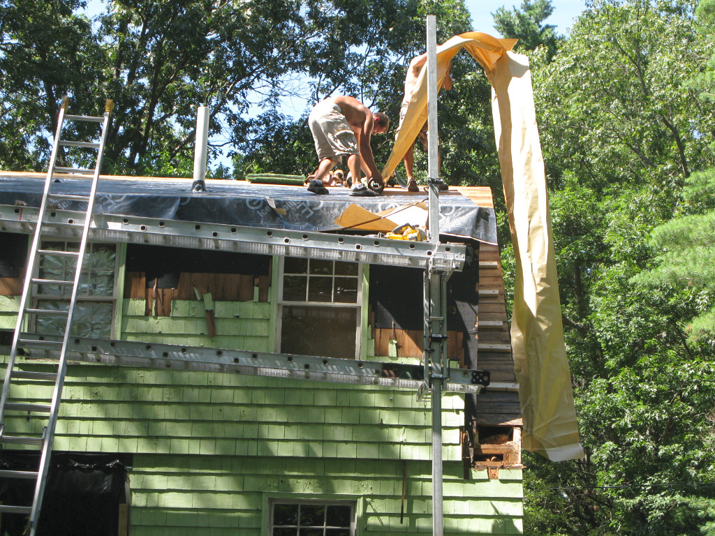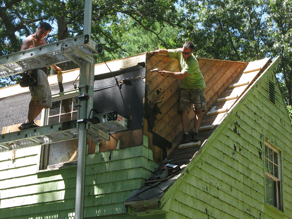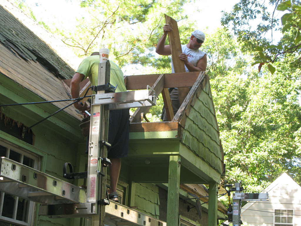 Meanwhile, the guys working on the shed-dormer roof in the back had it almost clear. |