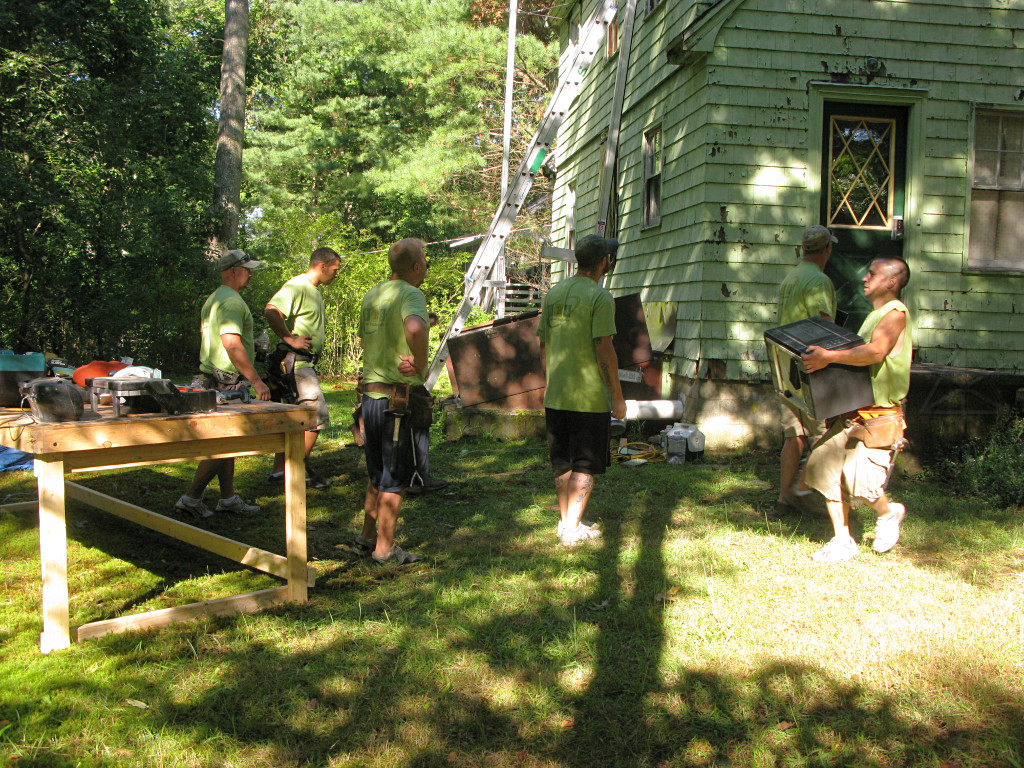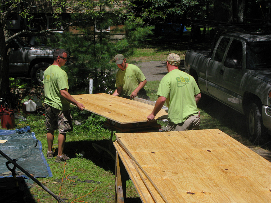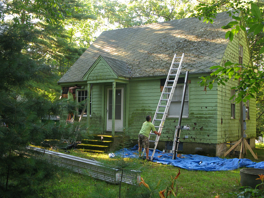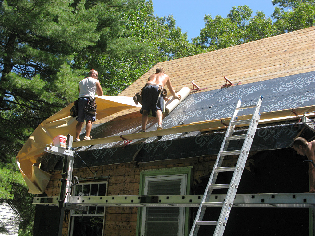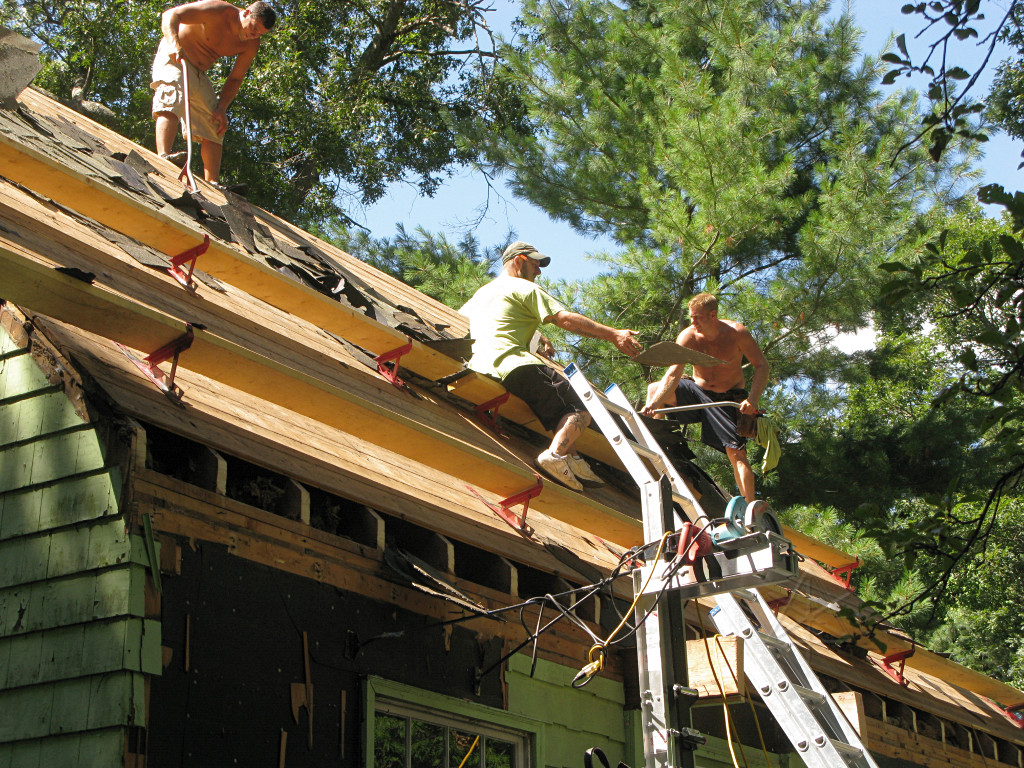Meanwhile, the guys working on the shed-dormer roof in the back had it almost clear. |