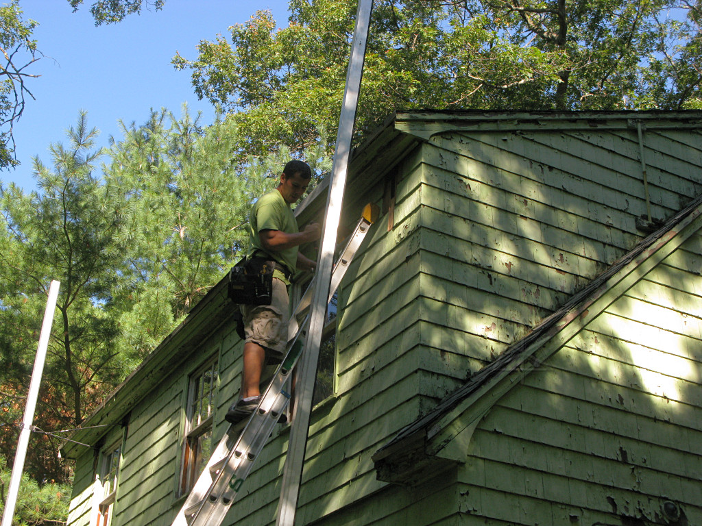 Taller poles went up onto the high shed-dormer wall. |