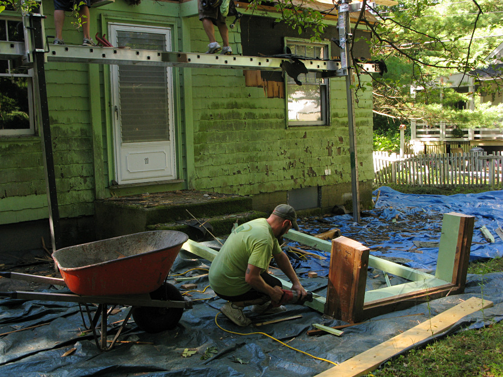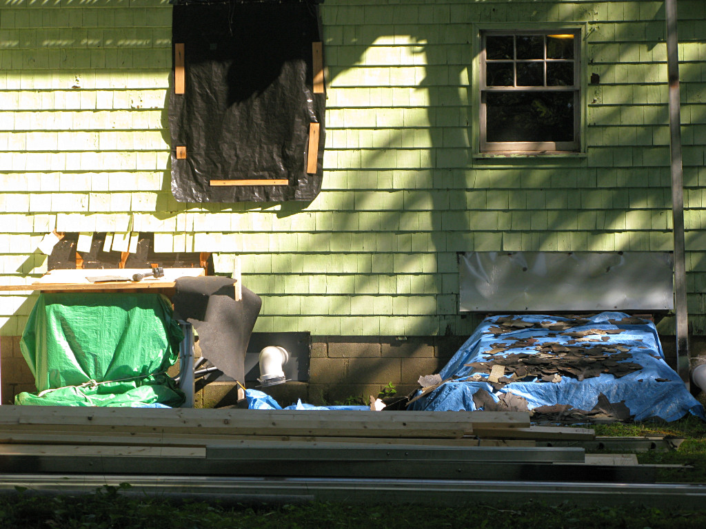 | This was the right time to do a little publicity, and send mail to various local lists and friends telling them how an "unusual renovation" was just beginning here and that they should wander by and look at it. While a deep energy retrofit isn't necessarily for everyone, I was hoping it would at least give other people some ideas. |