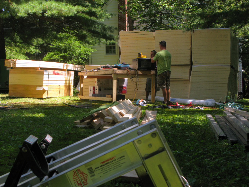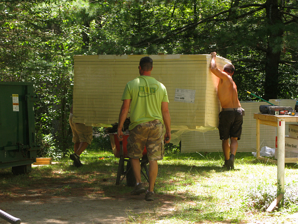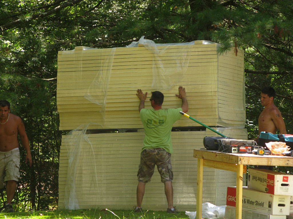 In the thick of the activity, the lumberyard delivery truck arrived with all the foam insulation and some other supplies. |
