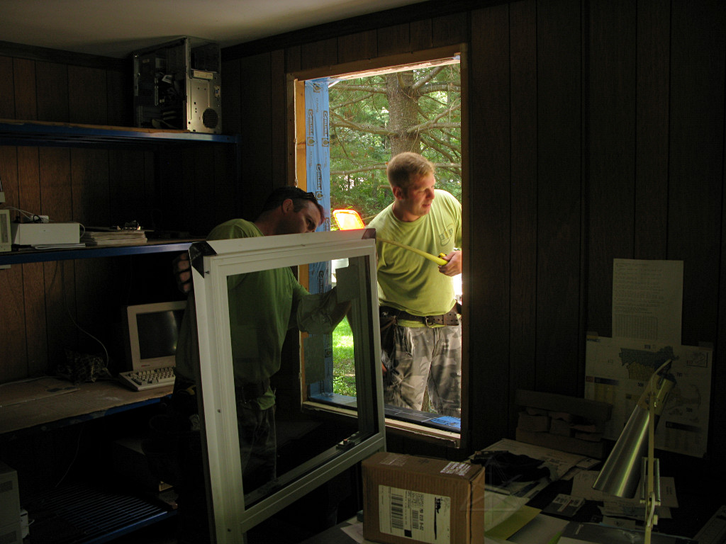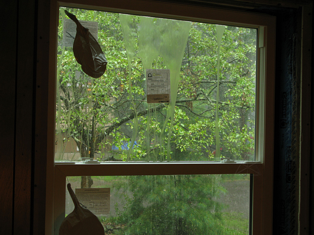 | Foaming and window installation proceeded along the east wall, ignoring the door for the time being. | |