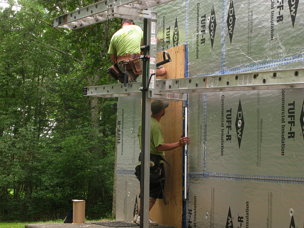 It was almost like a race, with two more guys working the west wall the same way, and whoever was on the ground frantically trying to prep and pass them materials. |
