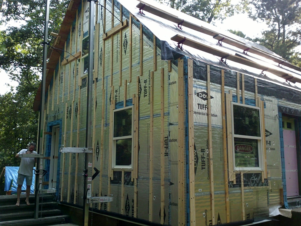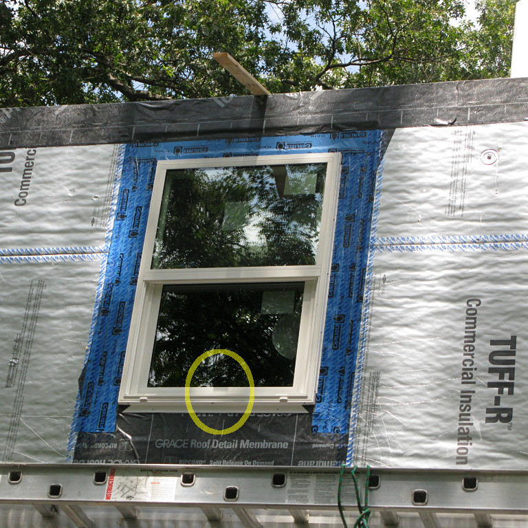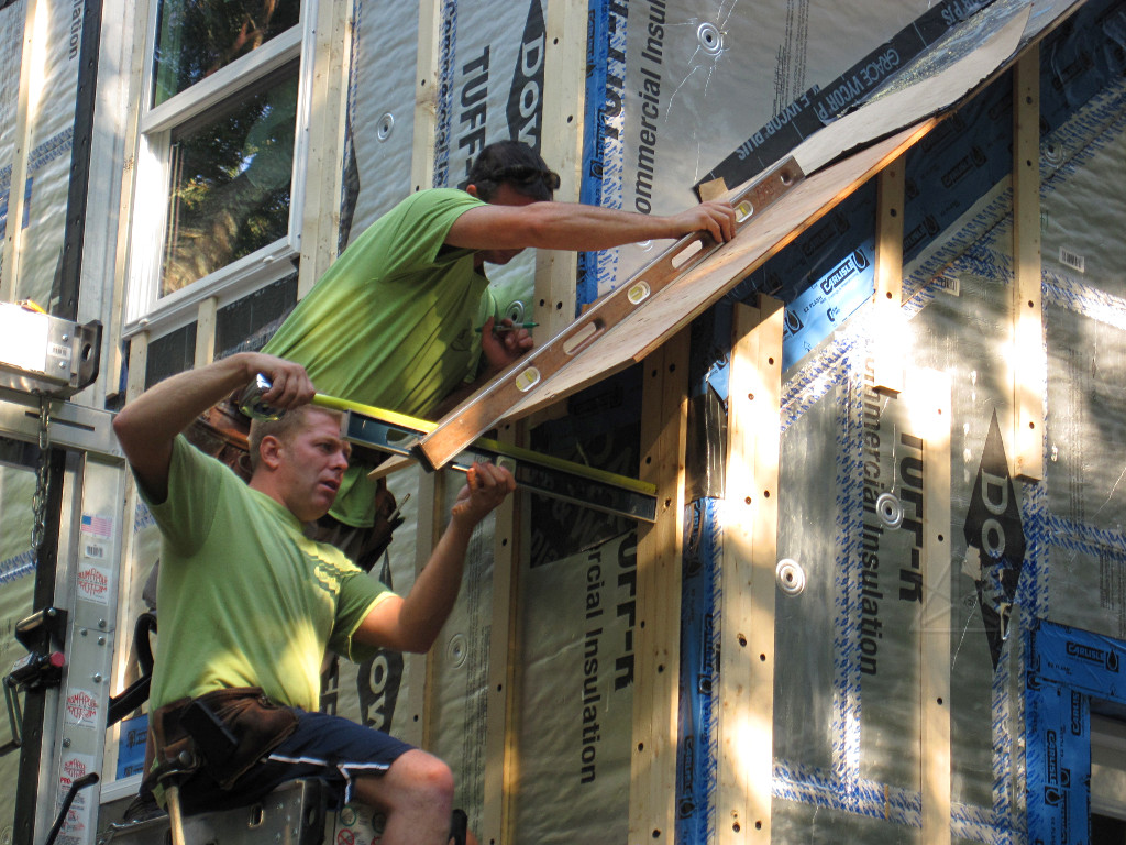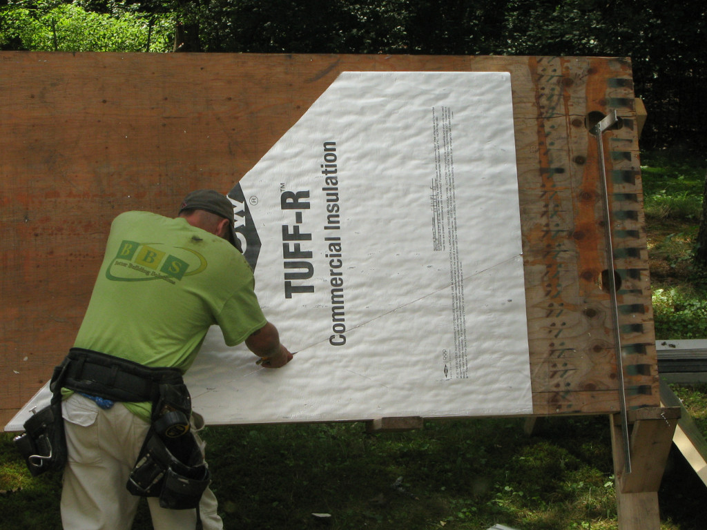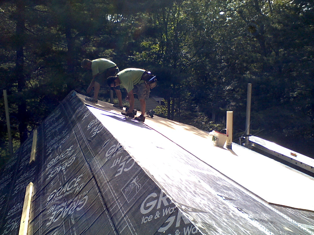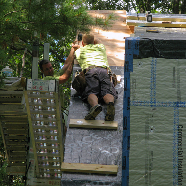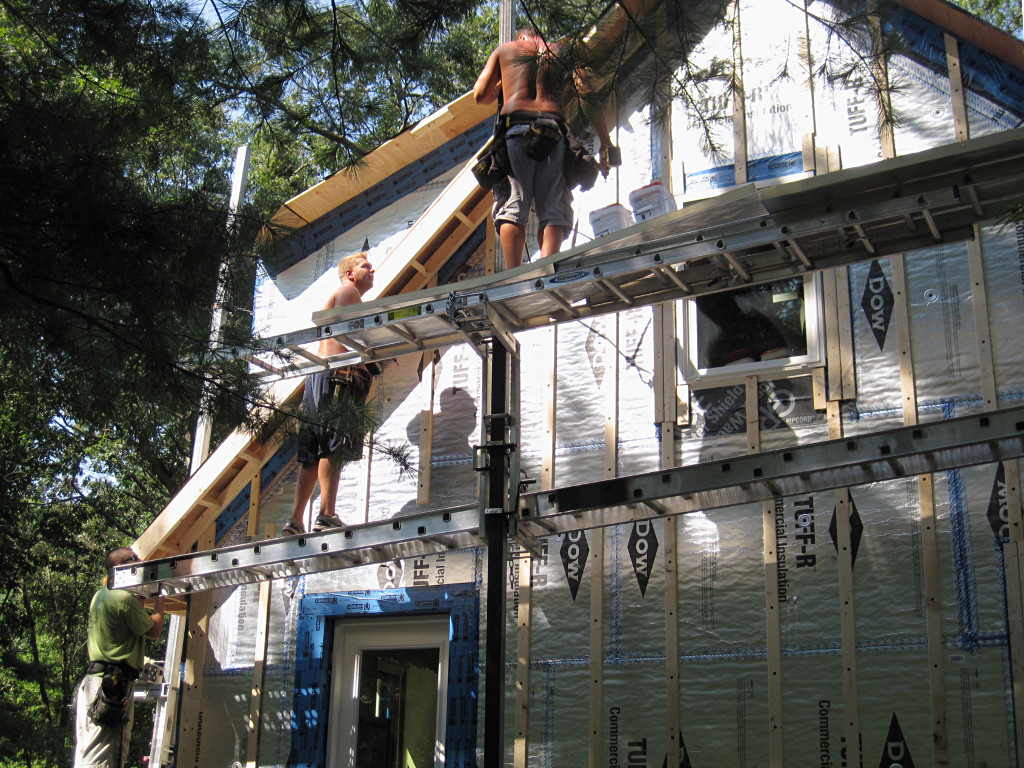 As on the front, the assembly of foam, plywood, and Grace proceeded upward toward the peak. |