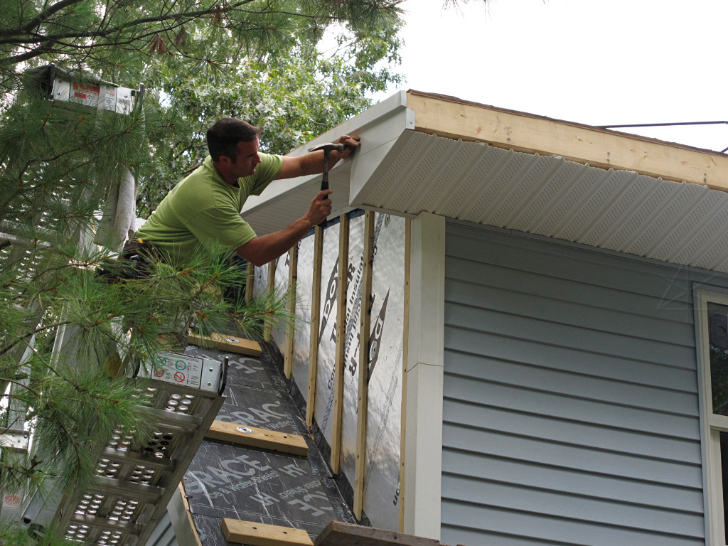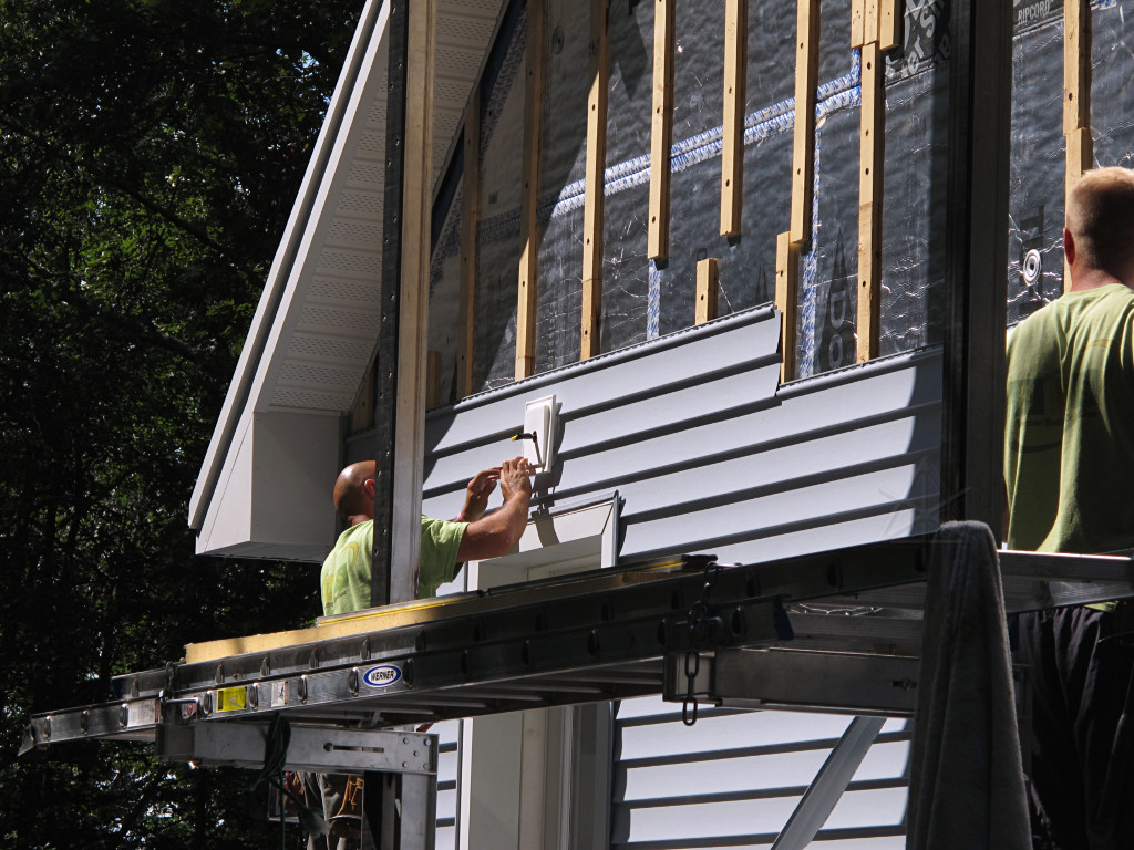 Siding continued rapidly up the last wall, bing bang boom. Another light block for the feed wire was accomodated. |