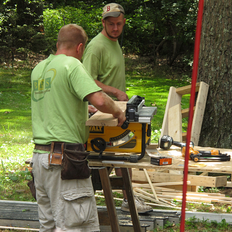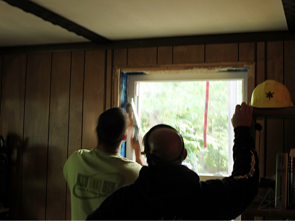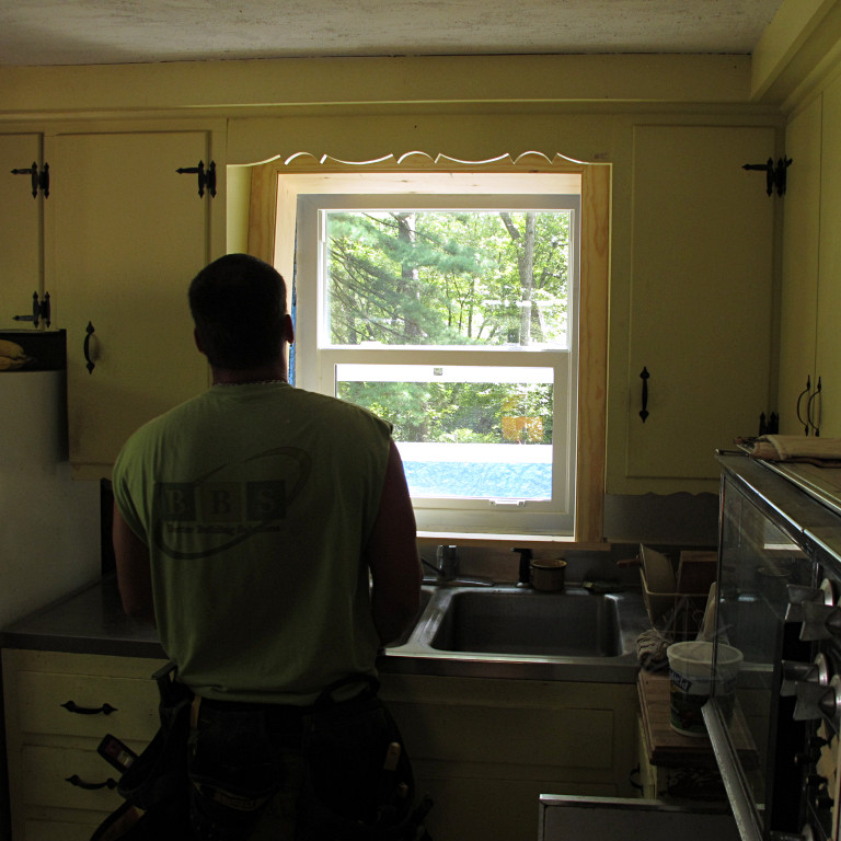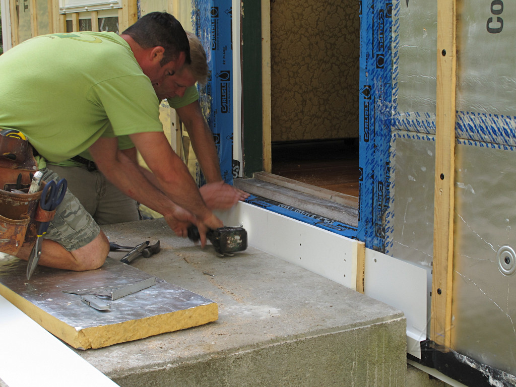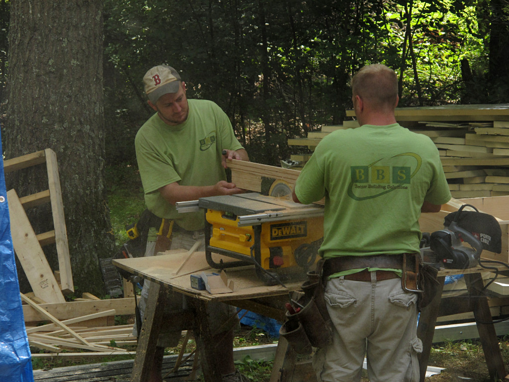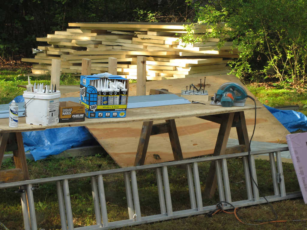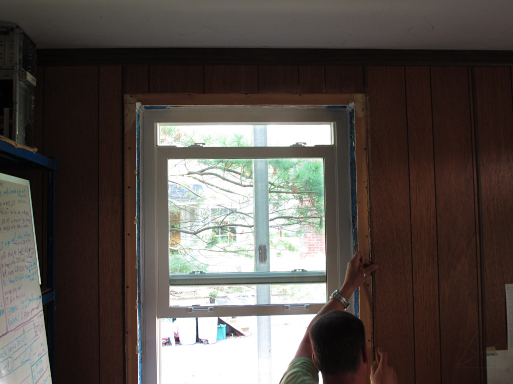 They brought a smaller but higher-precision table saw, and after the window air-sealing was done it was time to start cutting jamb boards. |