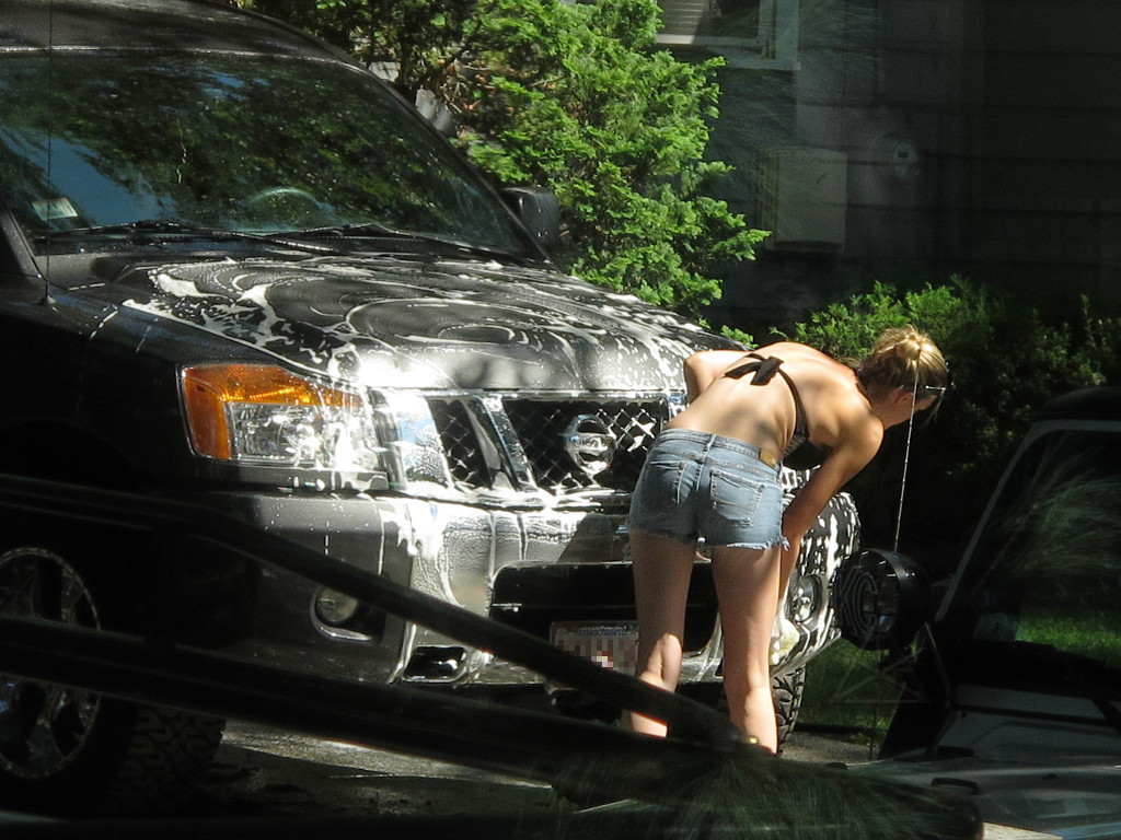 "bikini truck wash" across the street. Basically whenever this gal