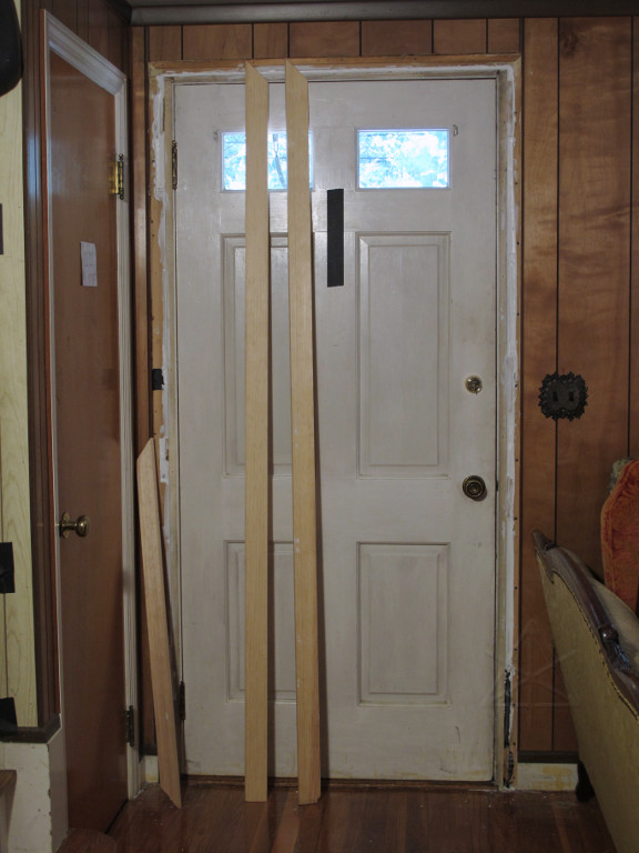 The front door still needed its sill and jamb extensions, and they'd brought along a generic oak sill piece to adapt in. |