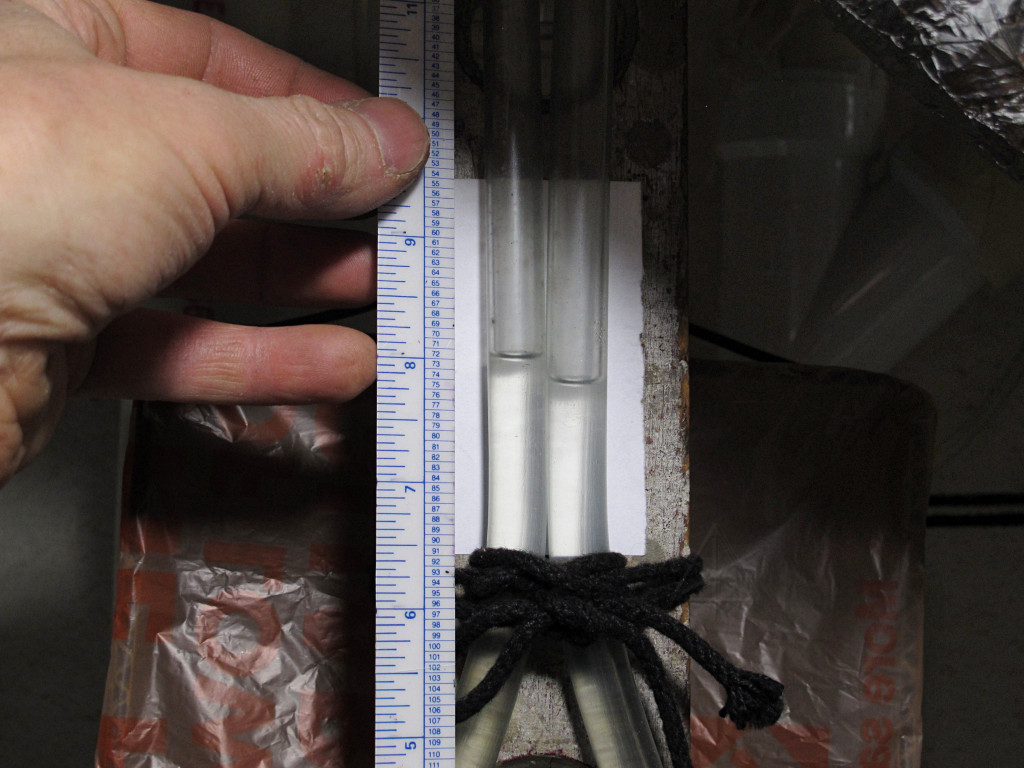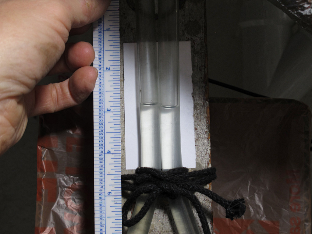 | The PVC pipe got cut to the final length and trimmed up inside and out, with care being taken during hand-sawing to not put too much side stress on it and break the seal to the blockoff. | |
