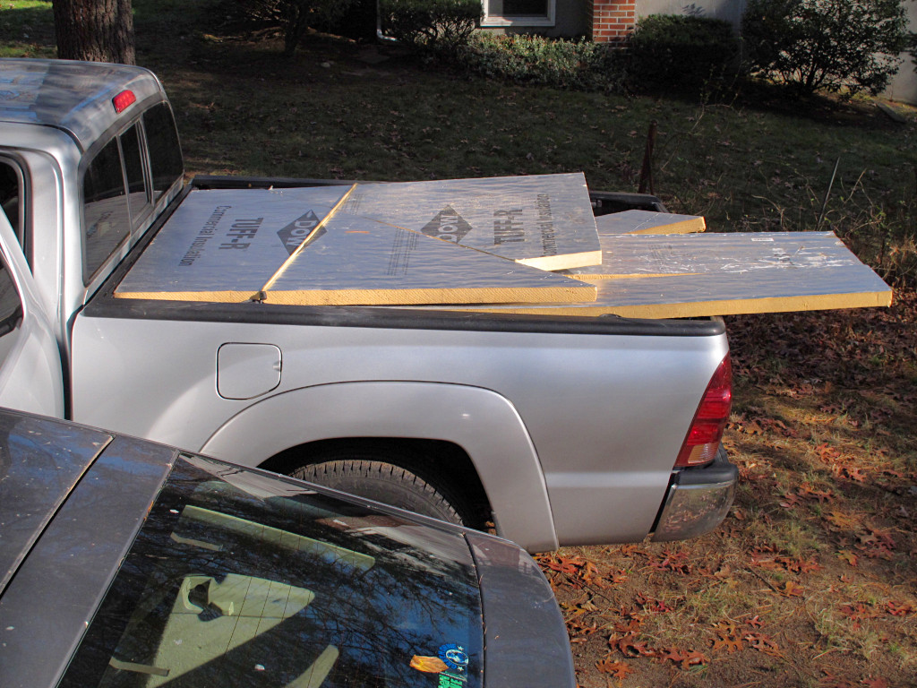 Next I stopped in at the still-unoccupied future "real home" of some friends who were having the *other* green builder I'd talked to do their retrofit, which let me really compare styles, approaches, and attention to detail between Synergy and the supposed competition. It became a little more clear that a certain amount of guesswork goes into these projects and even the "experts" miss a lot of stuff or expend more work and materials than might be warranted in some areas. For example, walls getting dense-filled with cellulose just because "everybody else does that" with less thought given to its effect on the overall assembly. Or six inches of sprayfoam all over a basement wall with cold air howling in past a poorly sealed duct penetration right there in the middle of it. Being able to spot some of these failures or diminishing-returns jobs was quite instructive, and a chance to apply some of my newfound wisdom to ask the right hard questions. There's a lot out there to be cynical about, but we need to keep pushing the industry in the right directions. My last stop that day was the Medford home of the lead guy *of* said green-building competitor, who was still retrofitting his own two-family house and also regarded it as an experimental platform in which to try different things. It was near the end of the day and I figured he'd be done with visitors, but he recognized me and remembered our good discussions in the past and welcomed me in. He's taken a couple of novel approaches to problems, for example building a small superinsulated room inside a large cold mostly-unconditioned basement to contain a bunch of HVAC stuff so its space becomes coupled to the conditioned floors above. There's also a substantial PV array on the roof, and a whole variety of energy-efficient window brands installed around the place just to see how they perform. Another good geek-fest, and I headed home really pleased with how the day had turned out even though I'd only gotten through about half my site list. Well, there would be next year but by then perhaps *I* should probably be hosting at my own place as a candidate site to show off. I can rant about this stuff all day now. |
