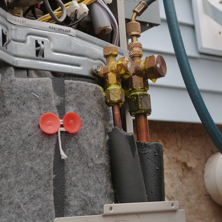 *Argh*. Still with the Covid-driven apparent impossibility of finding someone to come out and do the $800 "refill dance", in despair I simply shut off the outdoor unit and started heating on the 3 kW "backup" resistance element. Good thing I had done the secondary thermostat integration to let that work independently, because now I really needed it as "emergency heat". While that is *just* enough to heat the house through most of the winter, it is decidedly the expensive way to do it, as there's no benefit from the COP of the heat pump *and* it has to run longer to produce the same overall BTUs inside. With the refrigerant side of the picture out of commission again, I was almost resigned to having to go through the entire winter on the resistance coil and who knew when I'd be able to ever get the heat pump fixed. And the kicker was that I *still* couldn't find any evidence of an identifiable leak point, even scanning all over everything with the UV light and trying to sniff key points with an ancient leak-finder I'd had for years and filter out all the false alarms. That was only really a gas density detector, not specific for refrigerants, and would start indicating on just about anything including dust in the air. At one point I slit into the lineset insulation at a couple of points to see if I could detect anything along the piping, and the wheezy old sniffer started alarming on the *outgas* from the cut foam cells. By now I knew that all the system really needed short-term was a simple top-up of R410A, about three pounds worth. But that wasn't something I could just hop down to the hardware store and buy. Sale of refrigerants is quite restricted, to certified industry professionals, and a bit of specialized gear is also needed to fill a system. One of my nearish neighbors works in the HVAC industry and has his "ticket" to legally work on this stuff, and at some point we got to talking about my system. He offered to wander over and take a quick look, and after another couple of superficial and negative sniff and bubble tests, he came up with a couple of useful ideas on how to proceed. One was that he could bring his gear over and add the three or so pounds of refrigerant needed, which could hold me over for a while if the leak rate remained steadily low. This is called a "gas-n-go", and while it isn't the most environmentally friendly approach, is done all the time in the industry. For small systems, escape of a pound or two per year of HFC refrigerants isn't considered so big a deal -- especially compared to some of the allowable leakage from large industrial systems. The right answer, of course, is to fix the leak, but if it's proving just about impossible to *find*, we run into the limits of practicality and labor cost. We geeked a bit about all of this, and he seemed somewhat impressed that I knew what I did about the system and what to add and get the system charge back to nominal. |