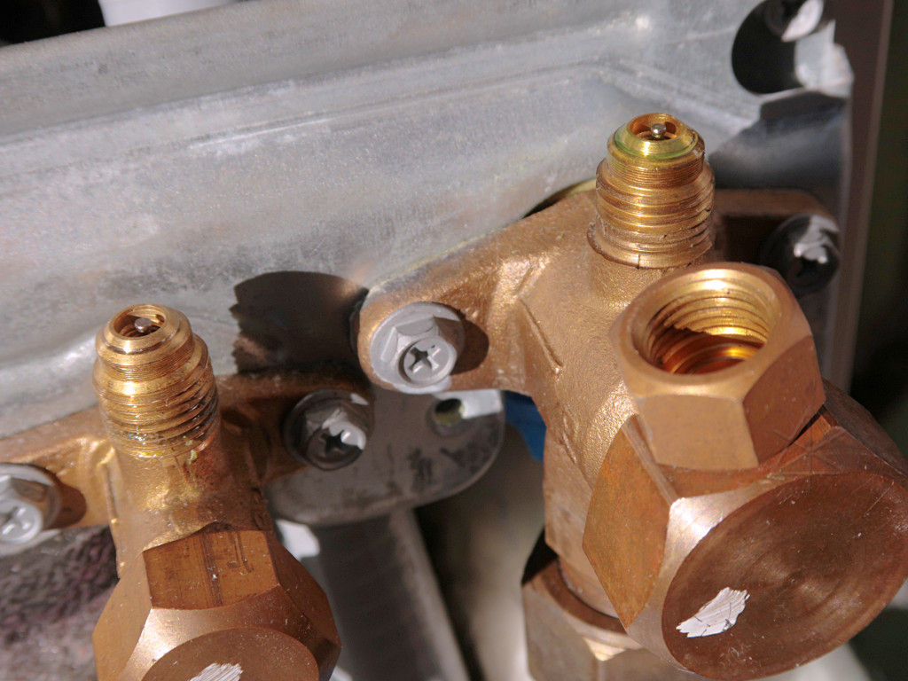 That was unfortunate in many ways, but one of those was that I had to basically start over and train up another guy on what my system consisted of and what had gone before with it. He came up to speed soon enough, and along with more fruitless leak-sniffing, we agreed to try a couple more things to proactively seal the system better. With it once again emptied of about the same remaining amount of refrigerant as before, I suggested opening the flare fittings for a good look and possible improved sealing with a bit of lubricant on reassembly. Now, these were the same flares that had been sketchily installed in the first place, the larger of which was visibly leaking the day after and all the installer did on the callback was crank the nuts down tighter. These had never been disassembled since, on the assumption that if they weren't leaking in any obvious way, they were best left alone. But Technician #2 seemed confident that because they were always suspect, they could be opened, inspected, and reassembled in a more leakproof way by applying the Nylog that the original guy should have used in the first place. The surfaces actally looked fairly good, so he spun a little Nylog around the threads and the back of the flares and buttoned things up again. He resisted the concept of putting anything on the *mating* surfaces, even though Nylog is supposed to be safe for systems if a little bit of it gets into where the refrigerant circulates. It's basically a super-thick polyolester oil. Still, color me skeptical of the sealing ability of a raw metal-to-metal junction. What's ironic is that now they actually make crush seals for flare connections now, for exactly this issue, but the guy didn't offer to install those at the time or possibly even didn't know about them yet. Next time these get opened, if ever, maybe that's something to do as well. | |