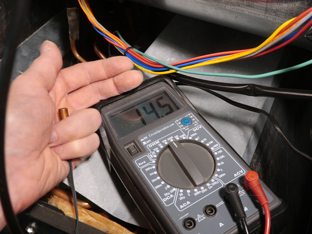 Except that one afternoon, I went to start up the system and got the somewhat dreaded flashing green LED on the controller. Huh, had I forgotten to re-enable the data line or something? Tapping the "menu" button brought up something I hadn't seen before: error code C5. I still had all the service and repair PDF manuals from the research/learning days, of course, and it took a while to remember after all this time which was the right one to look in ... but bottom line, C5 meant the thermistor on the gas pipe at the inside coil had gone on the fritz. The system refused to start up at all in these conditions, not even in some kind of less efficient "limp mode". Since the house naturally stays so cool by itself it wasn't an emergency, but the CO2 level was gradually creeping up and there was no way I was going to bring the disgusting soup that passed for outdoor air inside, so I had to start digging into this. |