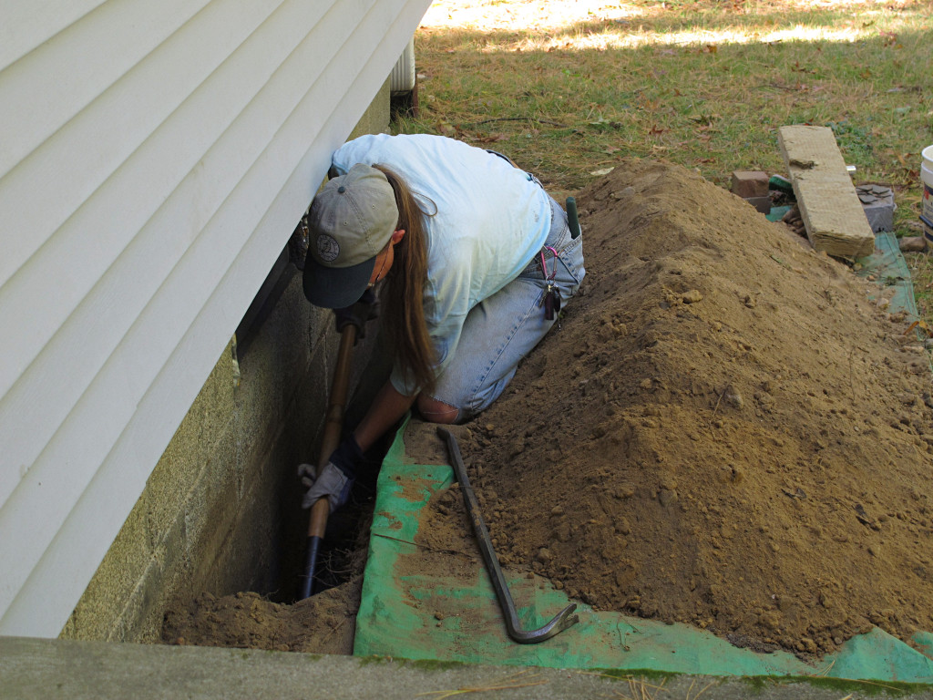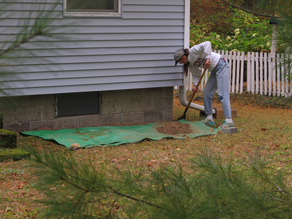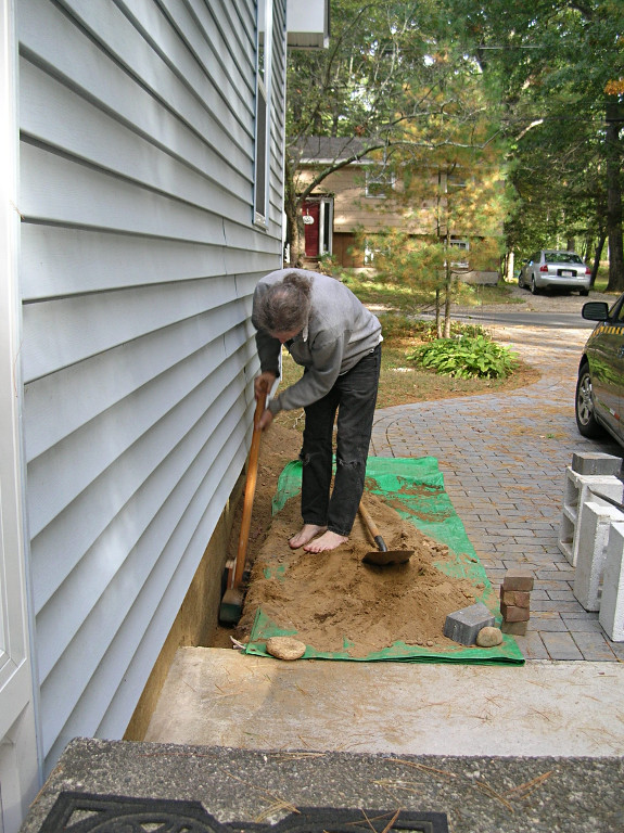 A short time later she'd made significant progress and kept things very tidy, producing a perfect-width trench. It's nice to have clueful friends who like pitching in on physical work! |