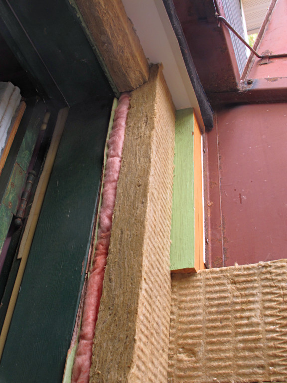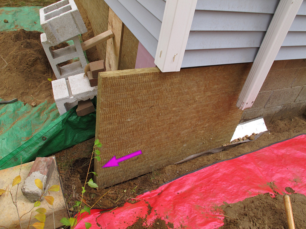 | The Roxul never felt soggy, though, other than in a couple of the horizontal "flange" pieces like near the side stoop and only in rain or snow melt when everything was wet. The spaces between the operable basement windows and the Roxul filler pieces over them never got unreasonably damp, either -- basically just tracked the outdoor humidity as always, so the Roxul's drying profile clearly remained wide open and it didn't appear to be accumulating any water. | |
