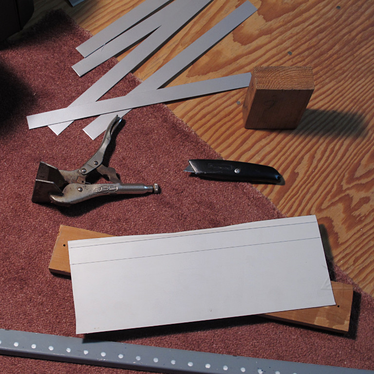The strips were cut with the usual score-n-bend method, which actually wasn't so easy when only snapping off an inch of material. |