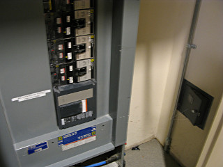 House-lights dimmer closets, in the service hallway. |