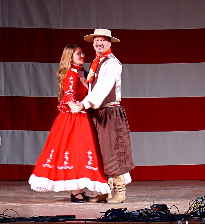 The gaucho dancers, who also danced with a pair of kids. [Which didn't even look particularly terrified.] Sign of the times: where there should have been a pistol holster in the past, is now occupied by his cellphone.