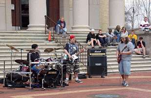 Meanwhile, a thrash-metal band had set up on the front steps of the building. They were VERY LOUD.