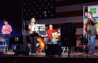which was a Brazilian "smooth jazz" band of some sort. One nice thing about how lighting worked out was that I *did't* light the flag much at all, which made it visually retreat into the background in contrast to the talent on stage. I thought this was entirely appropriate.