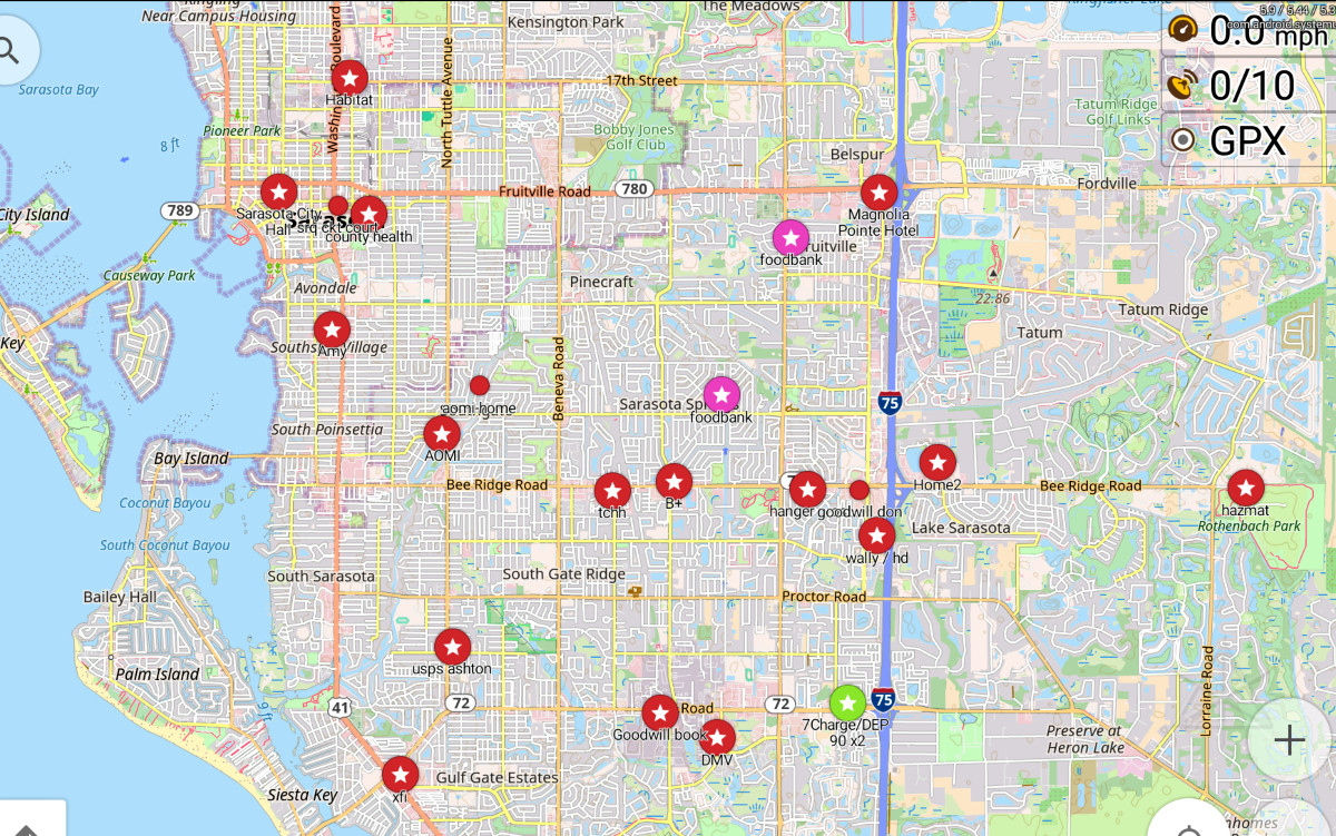 As I planned all these errands I added appropriate GPS waypoints to my tablet,