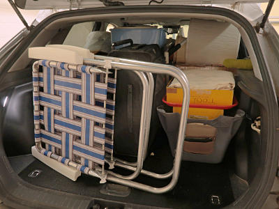 clothing and shoes into the car, along with the 50+ hangers that must have