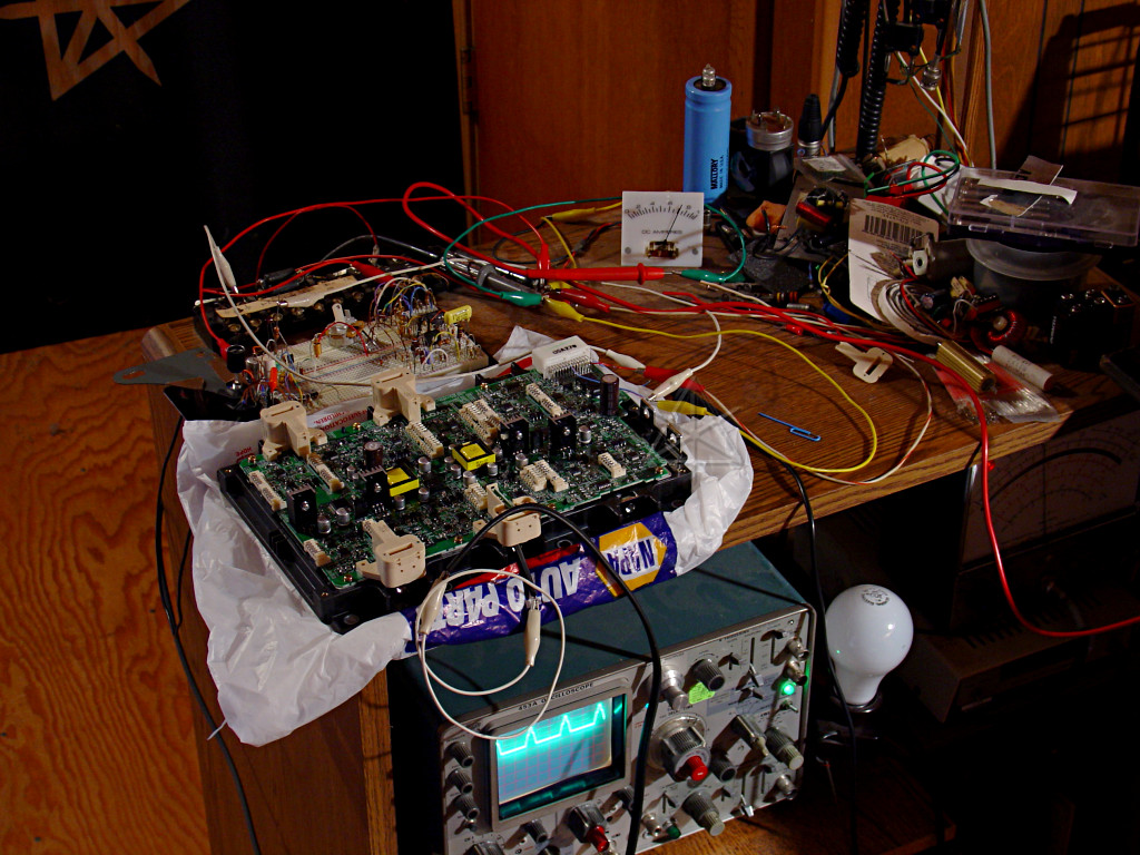 Control boardThe control board has its interface connector nicely documented, albeit at a bit of distance. These connection names are the same as used at the ECU, and described in the "Terminals of ECU" section of the service manual. This is really useful, because it indicates how to hook it up to power and where to find real-life signals in the running car to try and reproduce on the bench.